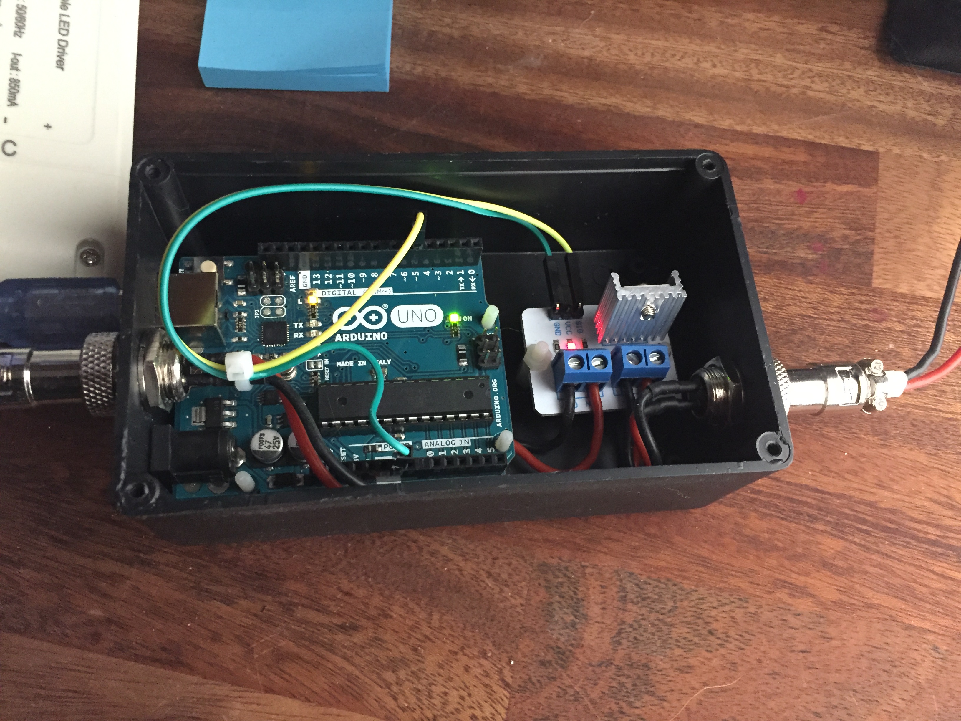 Det man behöver göra är att ändra pin för PWM signal. Jag valde pinne 5. Fick problem med bandning vid kortare exponering pga. den låga PWM frekvensen som default är 490Hz. Detta går dock att ändra med en enkel kodrad, nu kör jag istället på 62,5 kHz och kan inte se några tecken på bandning även vid 5ms exponeringar.