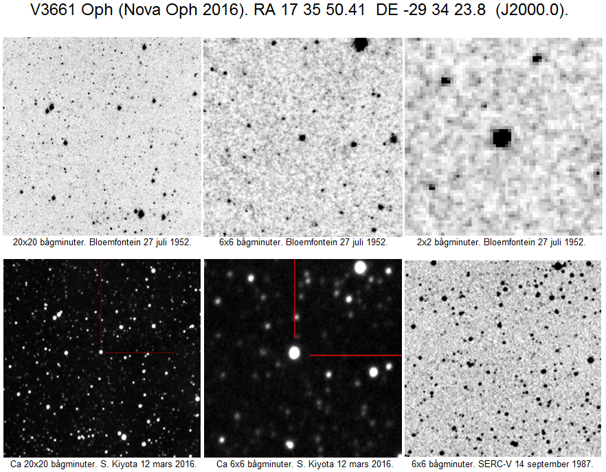Nova Ophiuchi 2016 (= V3661 Oph) upptäcktes 11 mars 2016 av Minoru Yamamoto och Yuji Nakamura, oberoende av varandra. Stjärnan hade då magnitud ca 10.6.