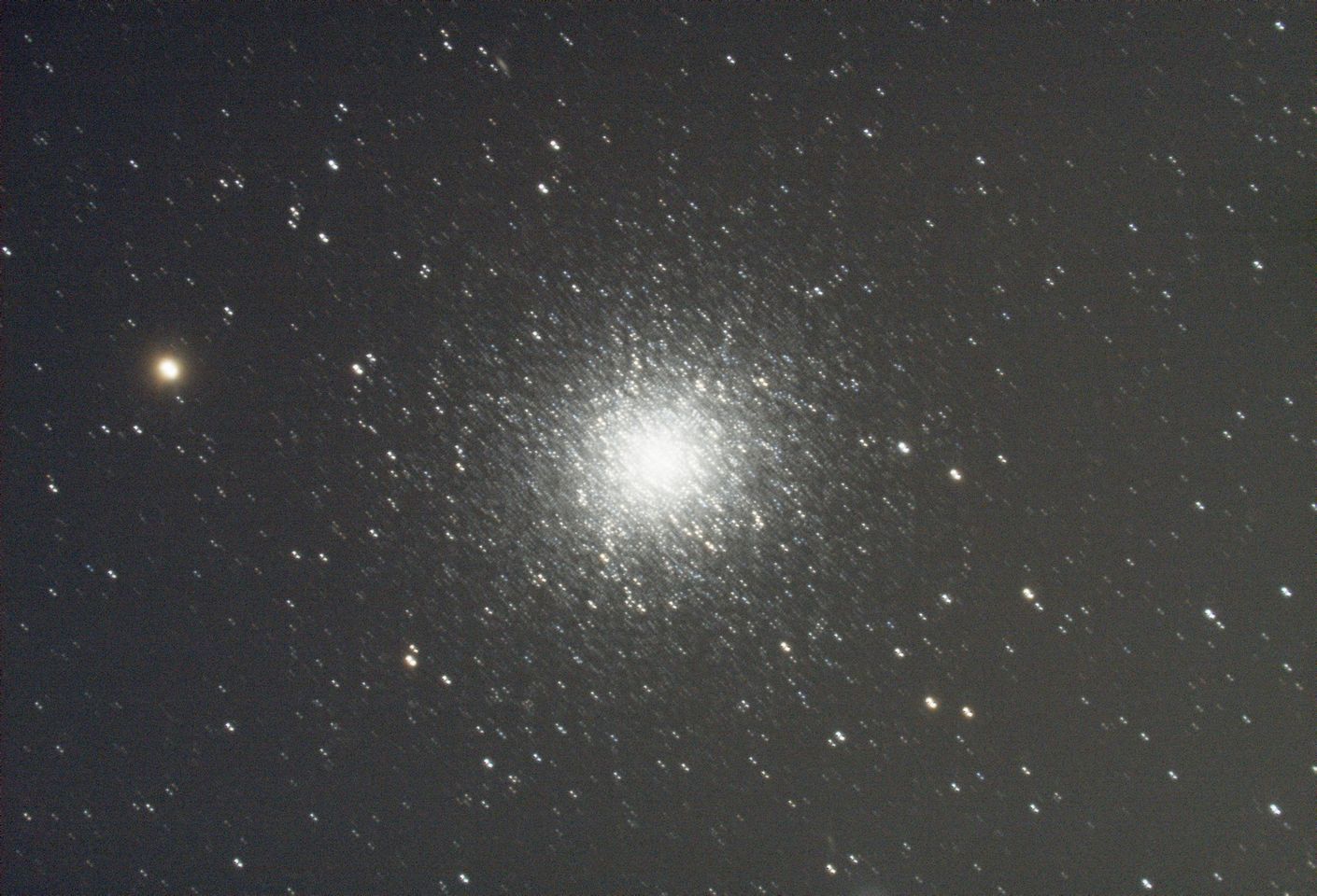 Min M13 i denna tråd bestod av 582x60sek tagna under tre nätter, fotade med ASI294, utan dithering. Jag chansade på att den stora mängden bilder skulle göra dithering överflödigt, men anledningen till linjerna är ju nu självklar. Jag hade högst troligt nått ett mycket bättre resultat om jag nöjt mig med att bara få ihop hälften av antalet, som varit fallet om jag använt dithering, eftersom den nästan tar lika lång tid som exponeringen.