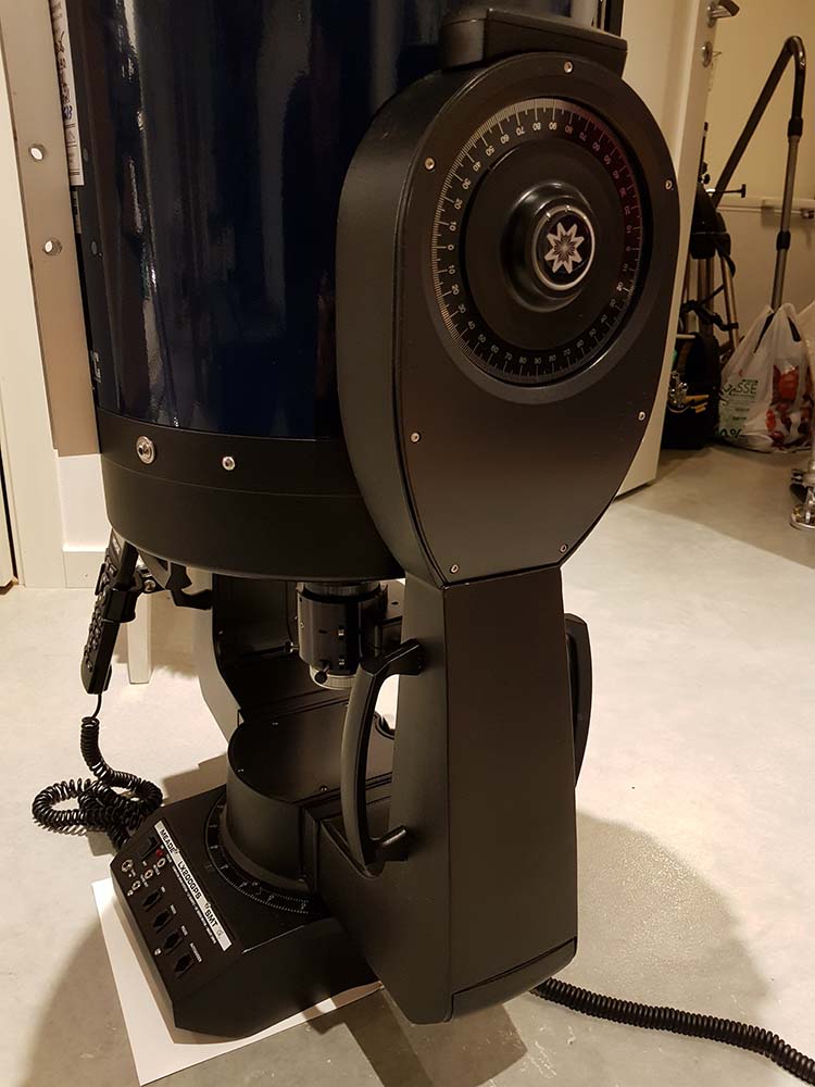 Detta är en gaffelmontering gjord för att hålla en stor optik så grejerna är tunga och stabila. GPS och Goto-funktion genom Autostar II-handkontrollen med ~120000 objekt förinprogrammerade. Drivs med 8st vanliga batterier eller med nätström (kabel medföljer).