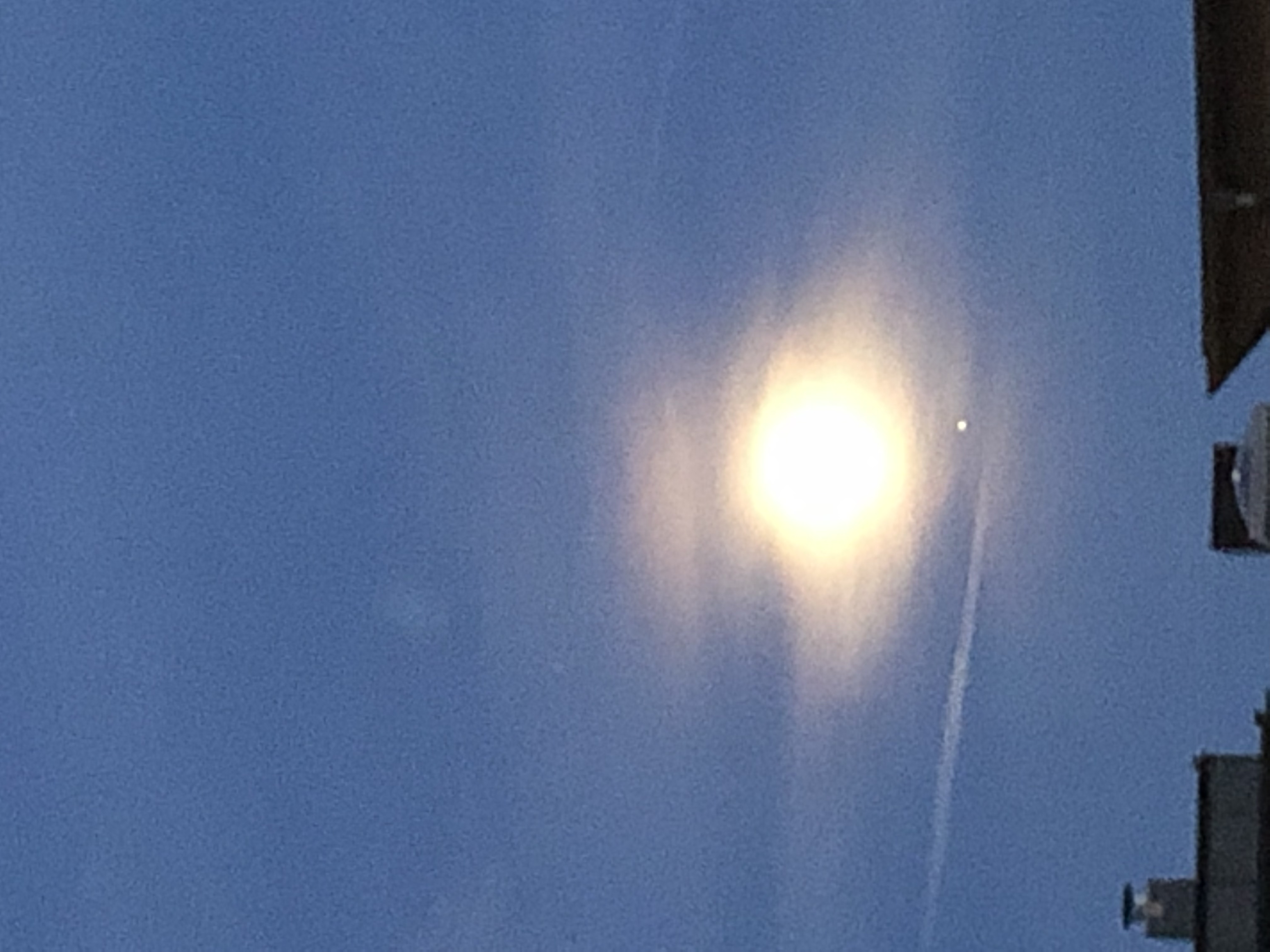 Jeg snuppede dette billede af den smukke konjuktion ud af stue vinduet i går aftes.