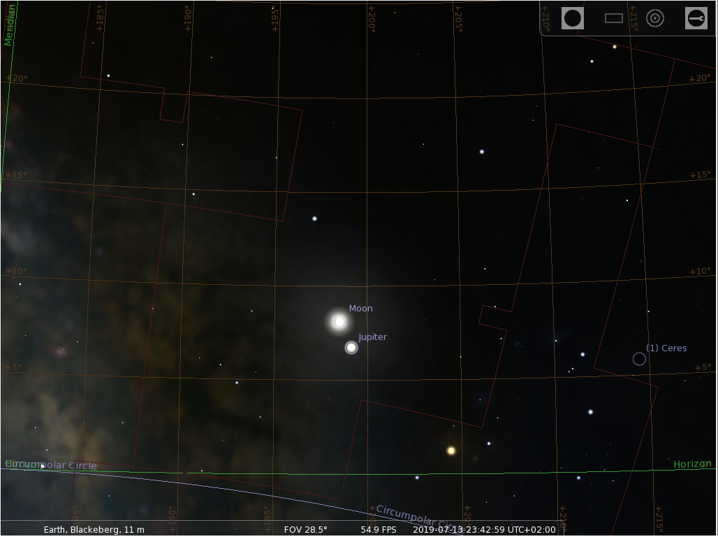 Lite osäker eftersom jag är nybörjare, men visst är det Jupiter som syns tydligt strax nedanför månen i kväll?