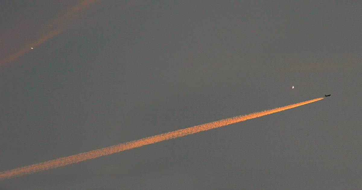 fantastiskt fina bilder Peter ! flygplanet med lysande kondensstrimma magnifik. och med både Venus och Saturn ....tjusigt !