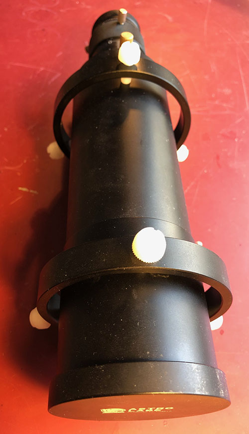 SÅLD Guidetub 240 mm f4 60 mm öppning. Nylonskruvar på ringarna. Vixenskena 200 mm. Både glidfokus för grovinställning och helical inte roterande fokus för fininställning. För 1,25" kamera. Jag betalar frakt i Sverige. 800 kr. Svara till cc.uddevalla@gmail.com SÅLD