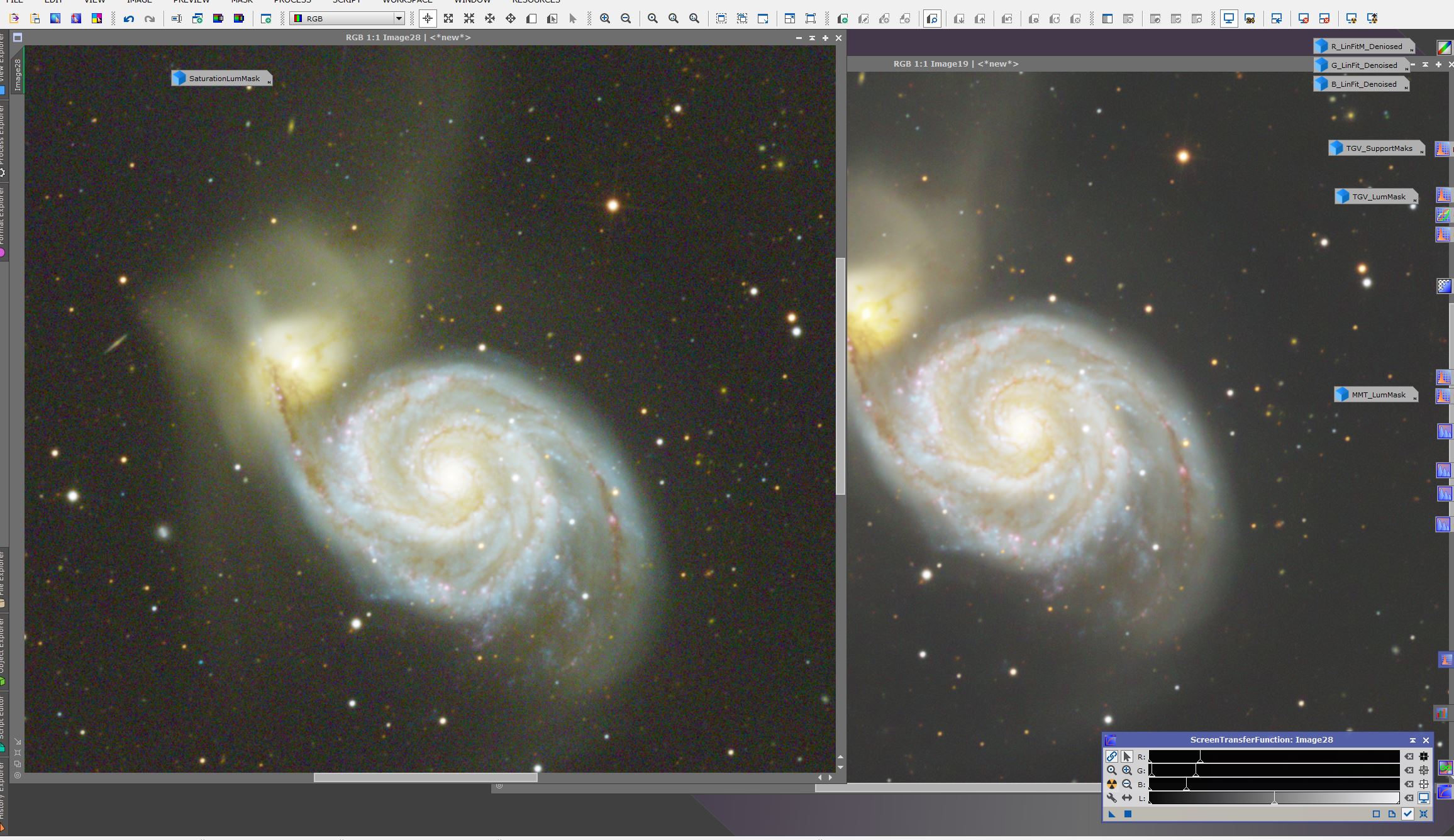 Kommentar: Detta var nog den sista datan jag fångade för säsongen. Till hösten kommer jag satsa på en rejäl mosaik så ville testa det för första gången. Detta är 2 paneler. Tycker det blev helt ok för den korta tiden. Var dessutom mycket månljus och lite tunna moln så förutsättningar var inte precis optimala. Håller på med en ny brusreduceringsteknik som jag inte bemästrar än så blev lite väl mycket.