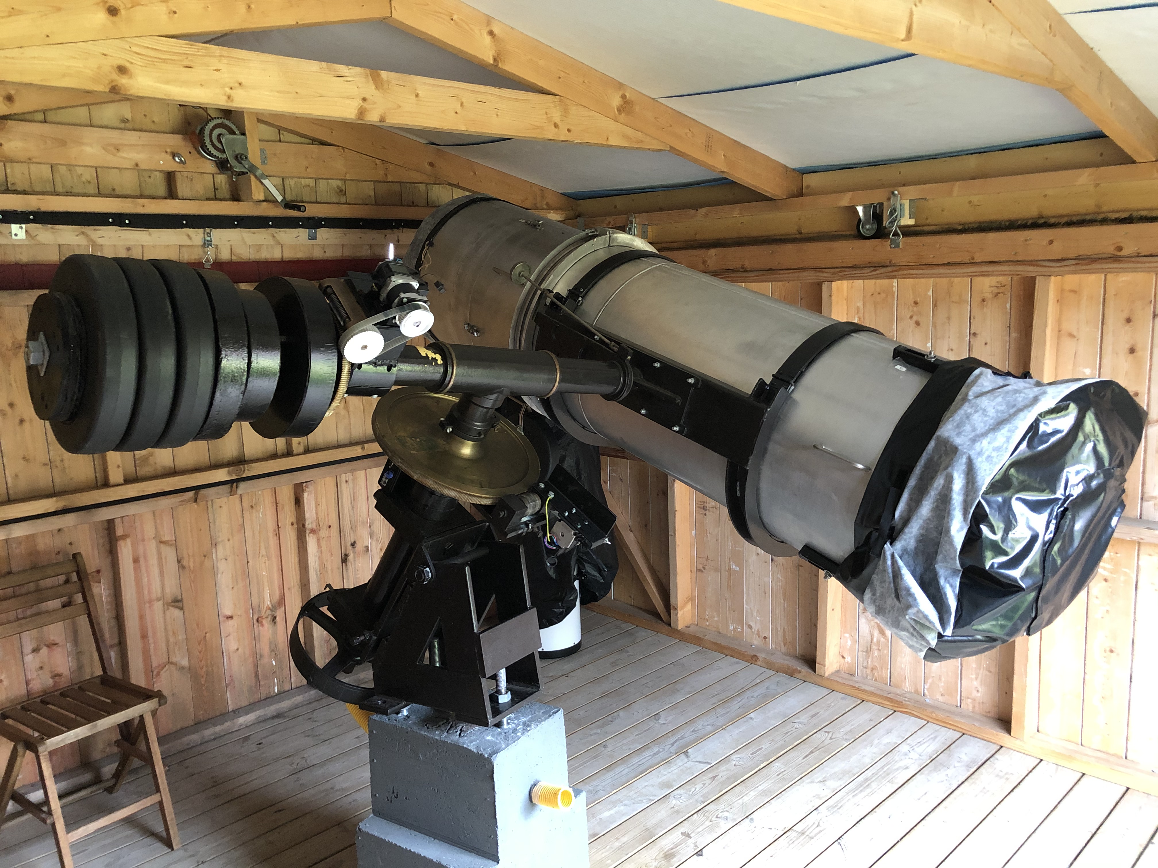 Min tyska montering år såpass stor (RA-axelns längd är ca 70 cm) att jag tror att kollision med piren blir ett mindre problem, men jag har ändå gjort piren smalare överst. Troligtvis kan det bli krock för objekt på hög höjd i öster och väster. Lådor och utrustning kan man ju hänga på mot söder och framförallt mot norr, där tuben aldrig kolliderar.stoffe wrote:Bra, tänk oxå på att ditt 520 mm teleskop behöver ha ett stort svep runt piren så bygg inte på för mycket runt om. Det var en av anledningarna till att jag valde en smal stålpir istället för en grov betongpir. Det hade aldrig gått för mig att få alla trevliga vinklar som jag nu har tillgång till när jag har mitt Cave Astrola teleskop monterat, det är 1700 mm långt ungefär. Speciellt observationer i zenit hade ej varit möjliga med betongpir i mitt fall. Jag har tillräckliga problem med den elektroniklåda som sitter på piren. Den är ibland lite i vägen men den är monterad på så sätt att de vinklar som ändå inte är intressanta pga av träd och riktningen till Uppsala blir lidande. Sen är de mer intressanta intressanta vinklarna som är mer relevanta optimerade att de ska ha stor frigång. T ex i söder, zenit osv.