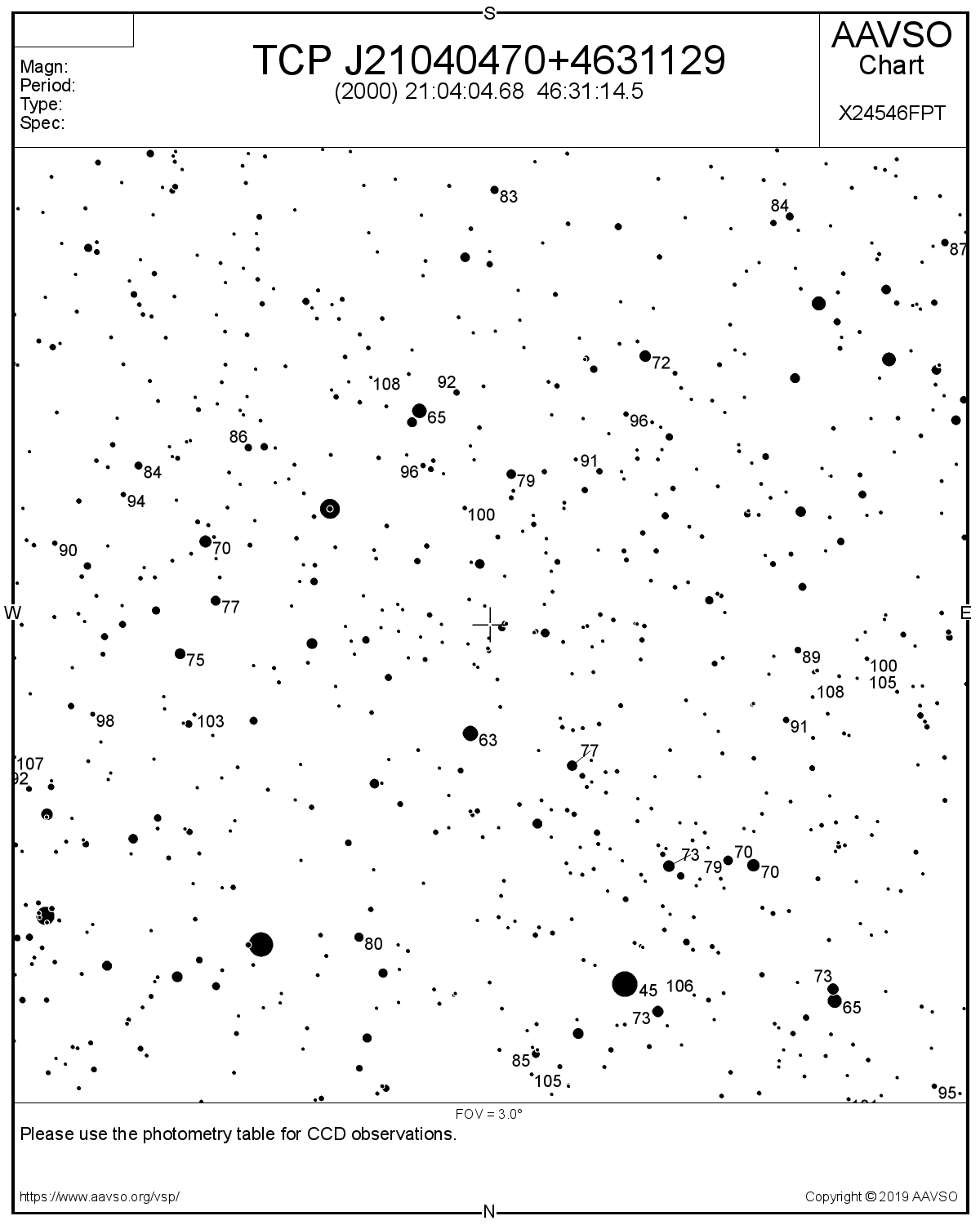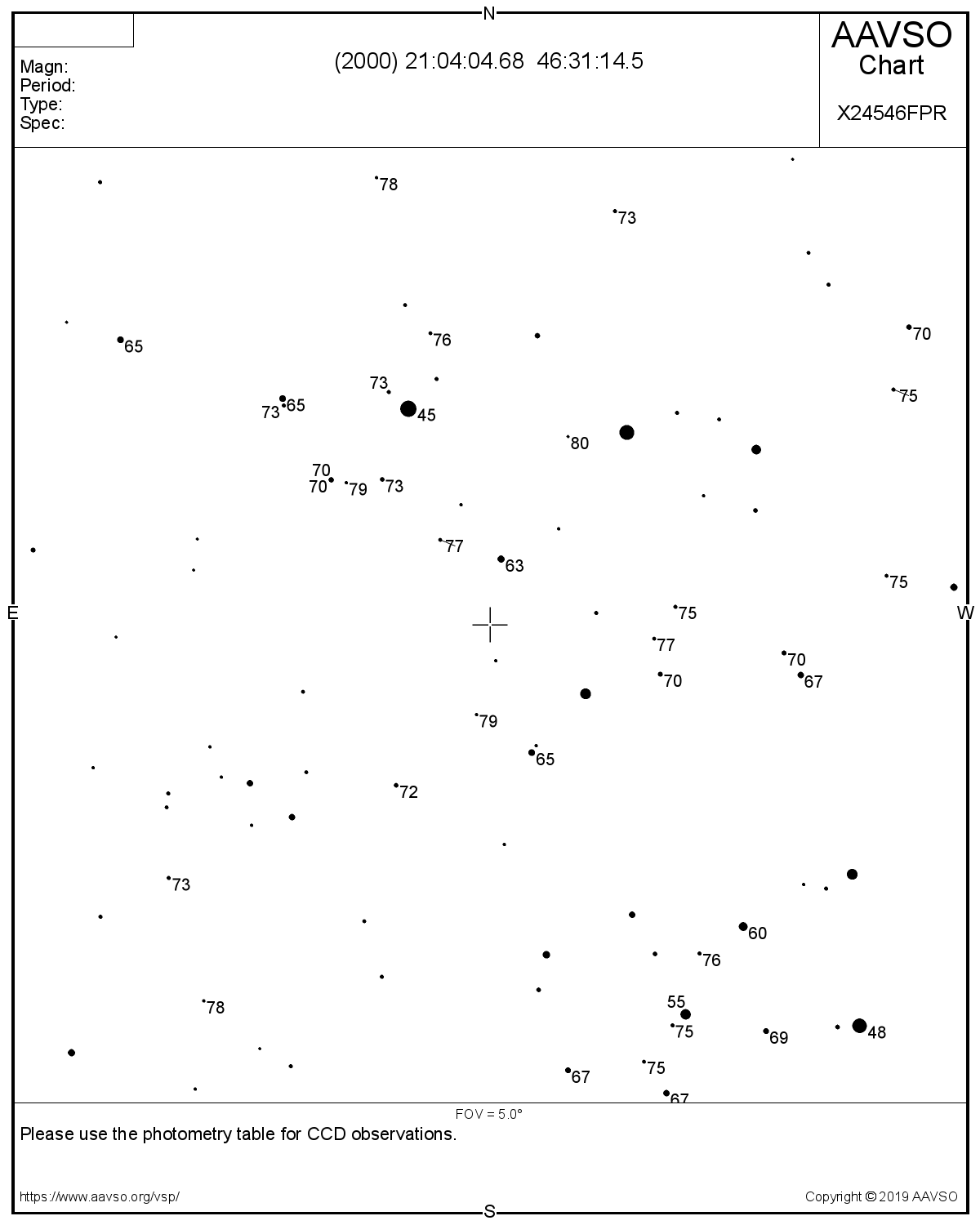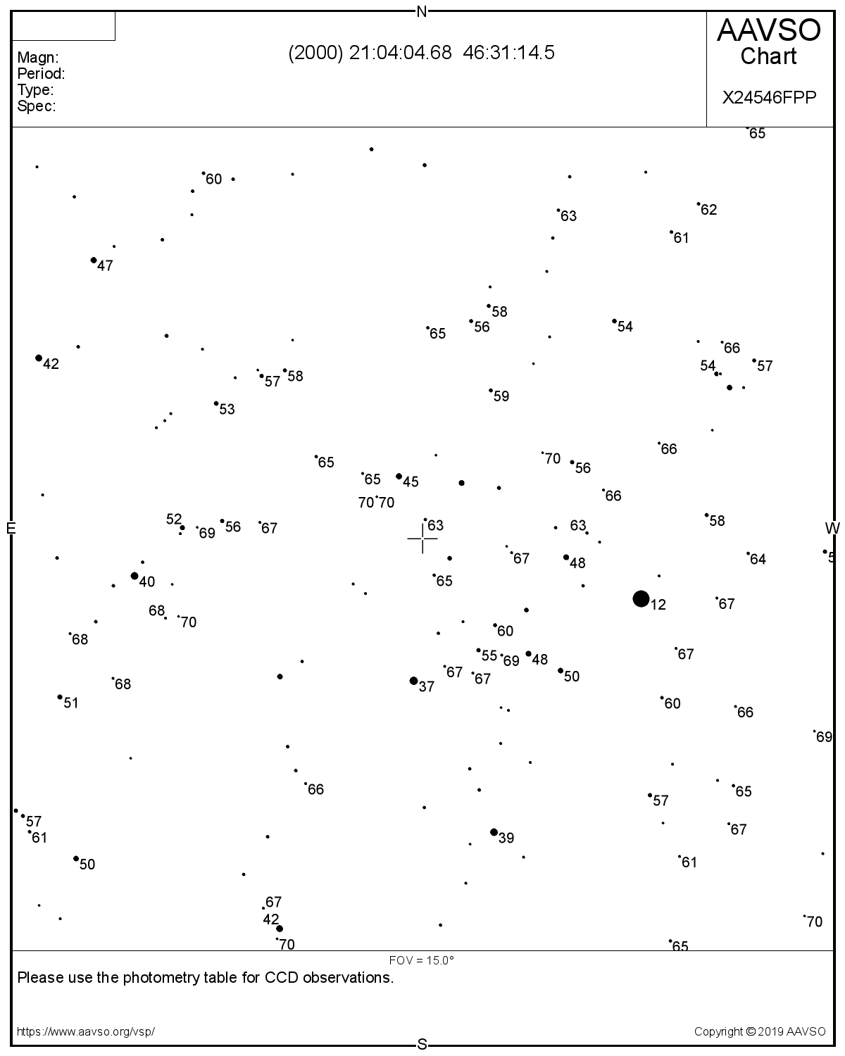 Notera att det finns en förbättrad sekvens med fler jämförelstjärnor. Här är en tregradersversion, övriga varianter laddas ner via VSP.