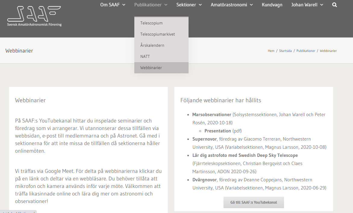 SAAF:s webbinarier på webben