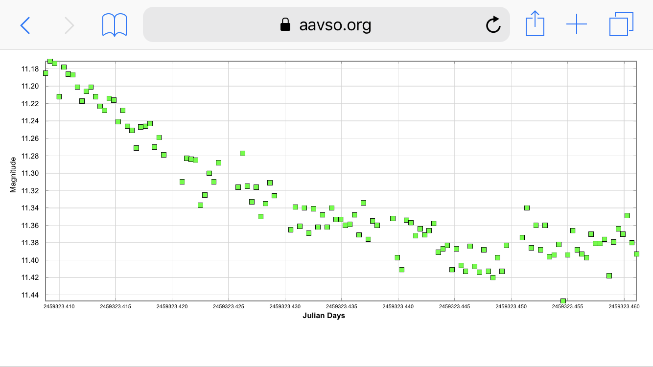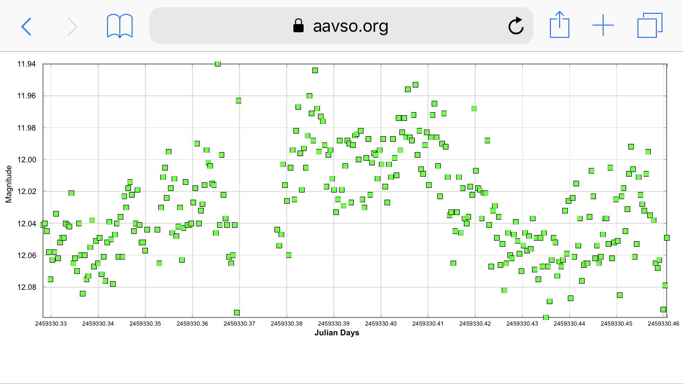 Det framgår att magnitudsvängningarna den 10-11 februari, när stjärnan låg i viloläge, var påtagligt större än under andra tidsserier (även om man inkluderar de fem senare serierna). Vore intressant att se om så stora fluktuationer går att hitta under framtida mätningar.
