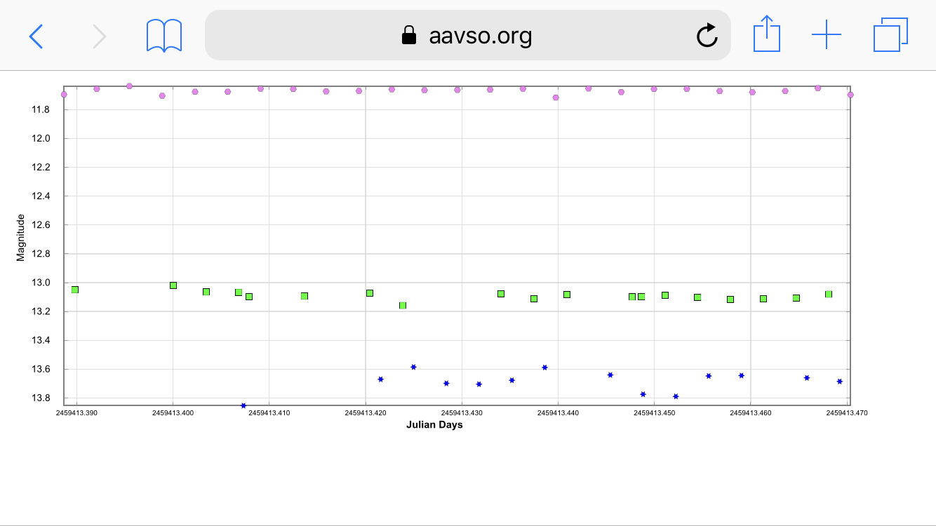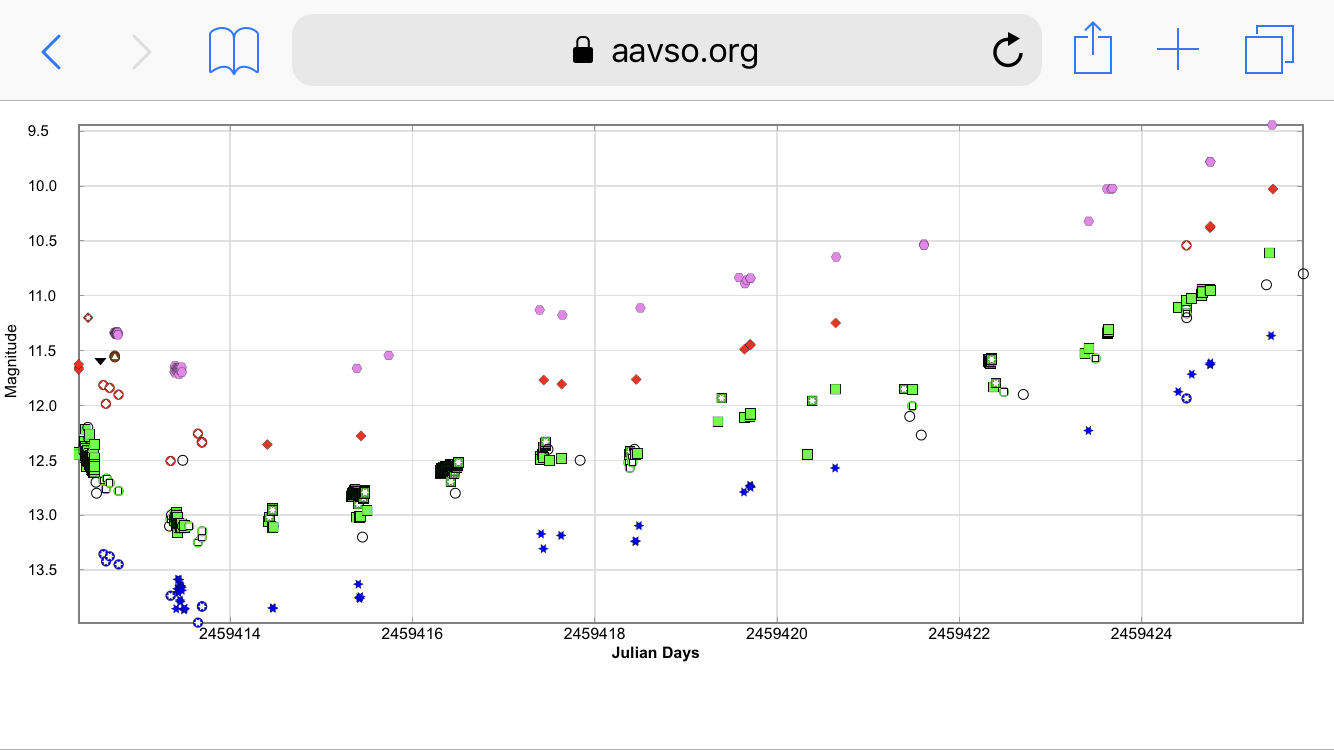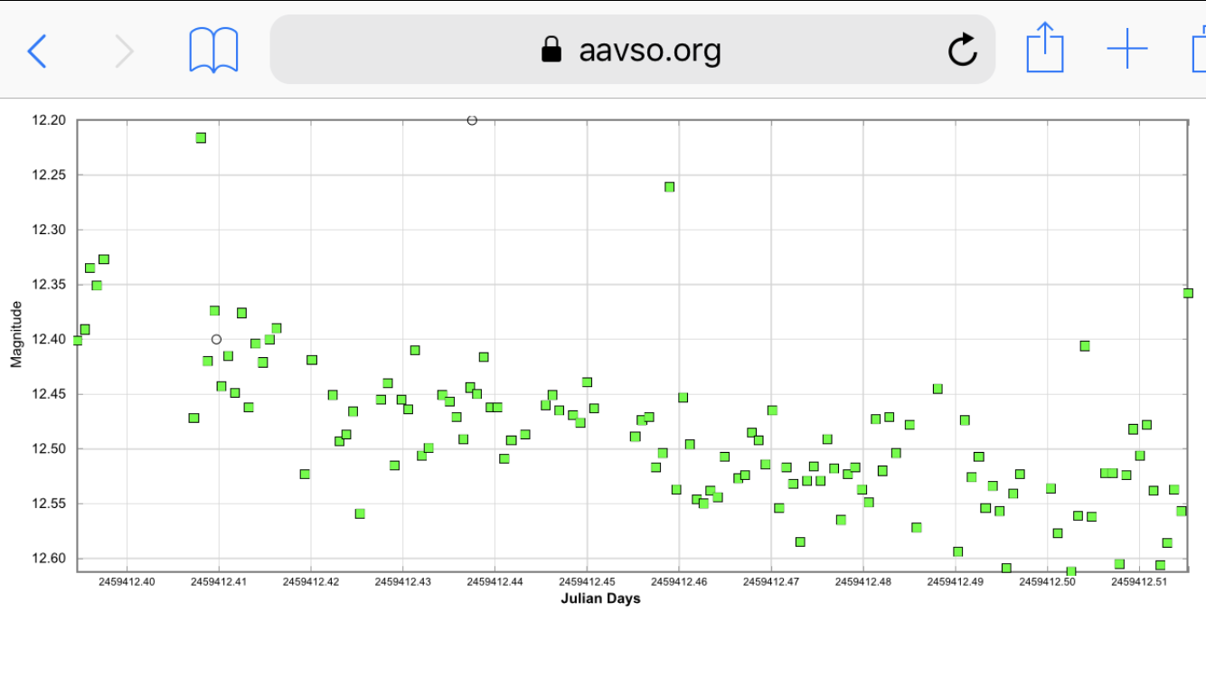 Jajamen, du var först på bollen i AAVSO, och troligen först även utom-AAVSO när det gäller tidsserie. Det är bara att gratulera!