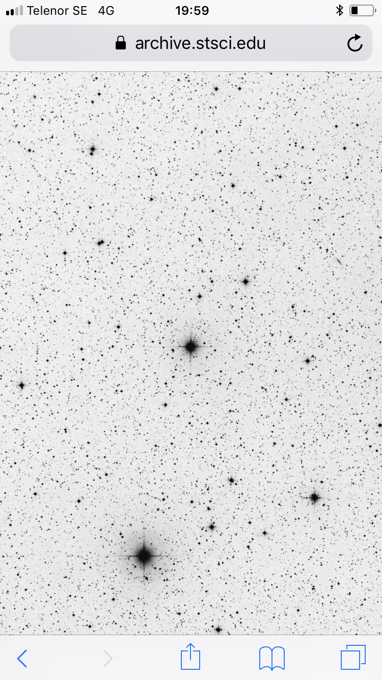 Inte ens på POSS-rödplåtar är stjärnan i närheten av att vara lika ljussvag, relativt omgivande stjärnor, som den är på perseidbilden. Jag lägger nedan till ett litet klipp från en POSS-rödbild (längst ner).