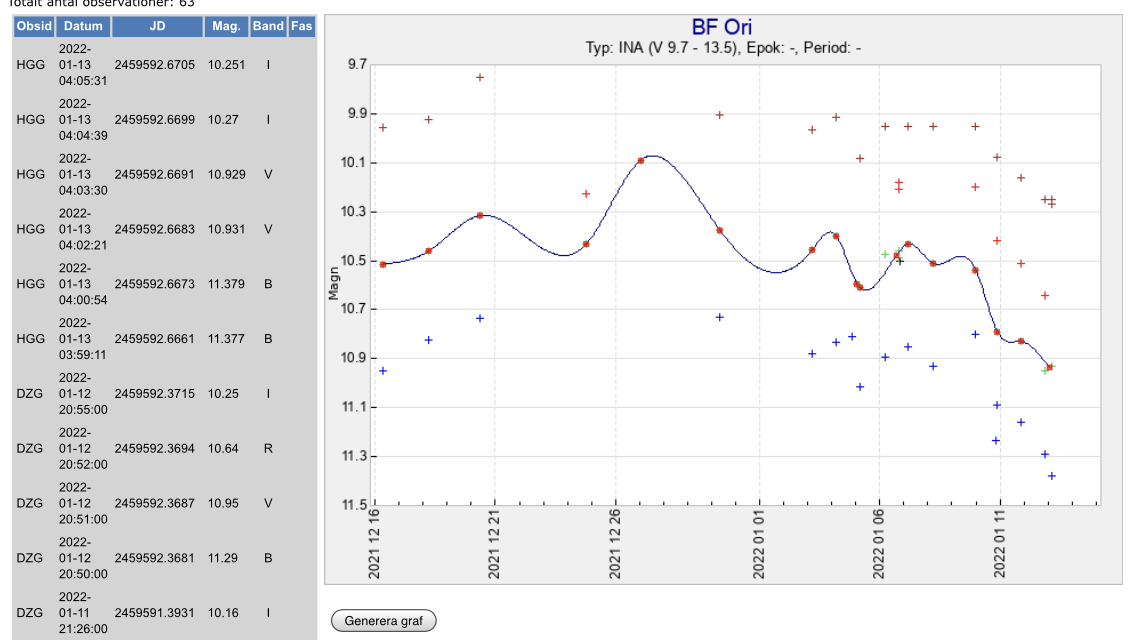 Den senaste utvecklingen av BF Ori syns nedan. Otroligt fin kontinuitet i sektionens mätningar. Levereras 1-2 gånger dagligen till NOT-teamet.