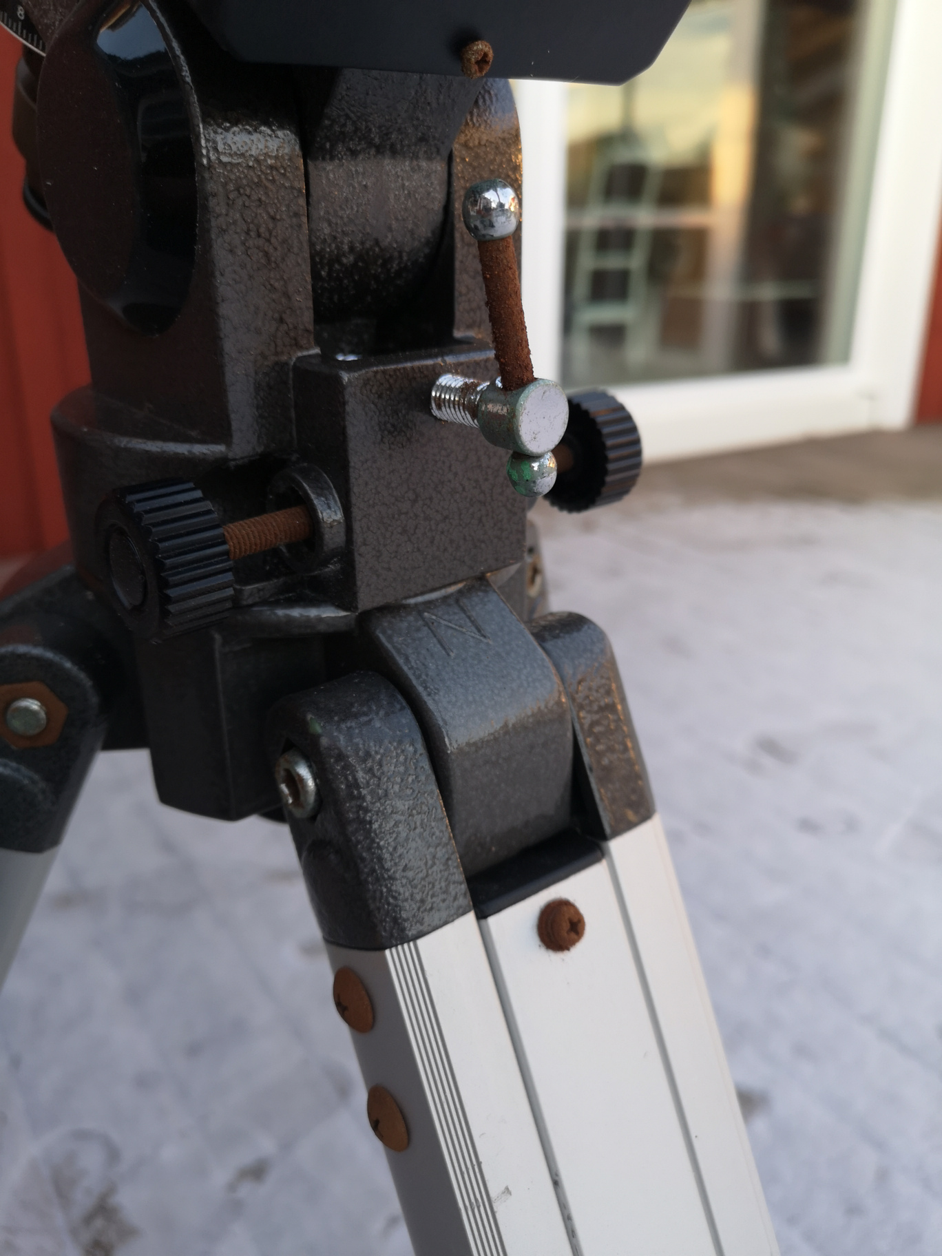 Tyvärr har monteringen förvarats lite olämpligt och därför rostat/ärgat en aning men all delar går att röra.