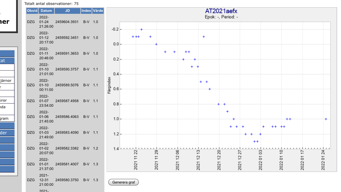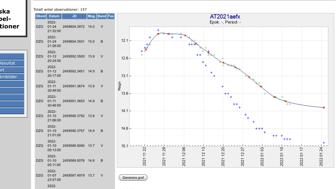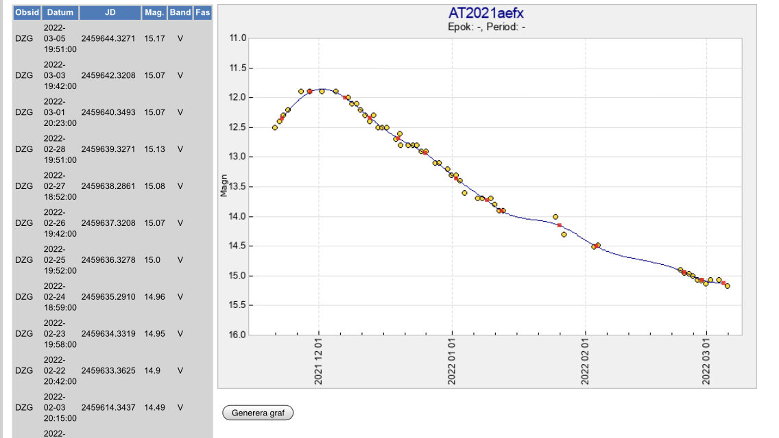 Nu har AT2021aefx avtagit till V-magnitud 15.17 enligt Gregors senaste mätningar. Se V-kurva nedan.