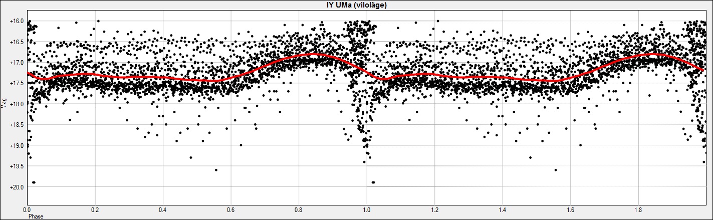 Lite mer IY UMa. Tyvärr slutade Oria-teleskopet efter 120 exponeringar - jag hade sett fram emot betydligt fler. Men det blev ytterligare lite annan form på kurvan: