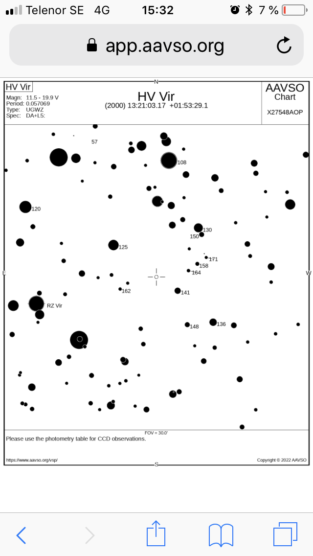 Bilderna som jag tog i natt på området kring HV Vir kan ej bekräfta att stjärnan är i utbrott..