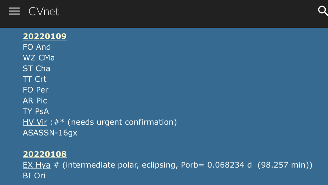 Re: Aktuella kataklysmiska variabler