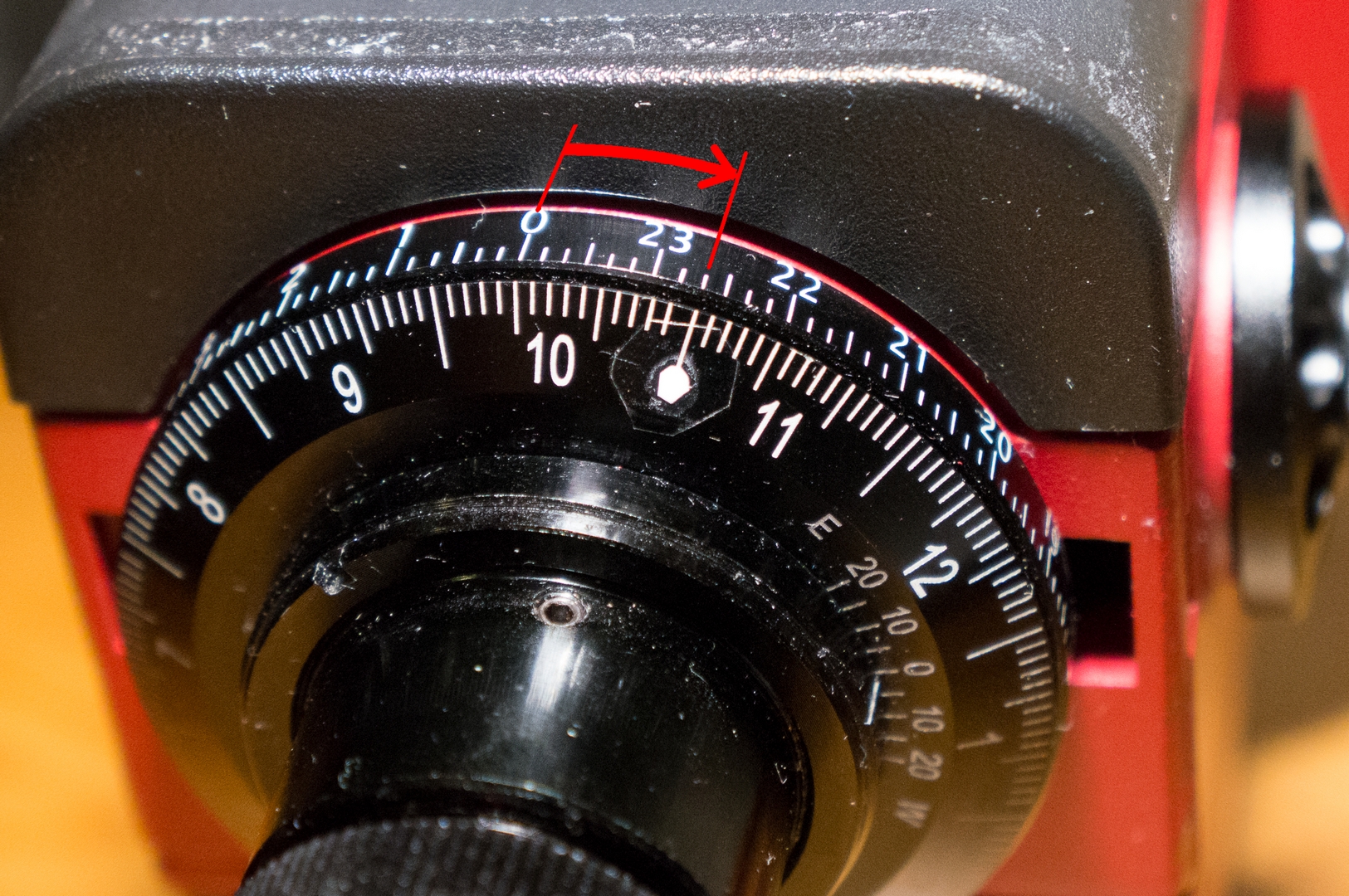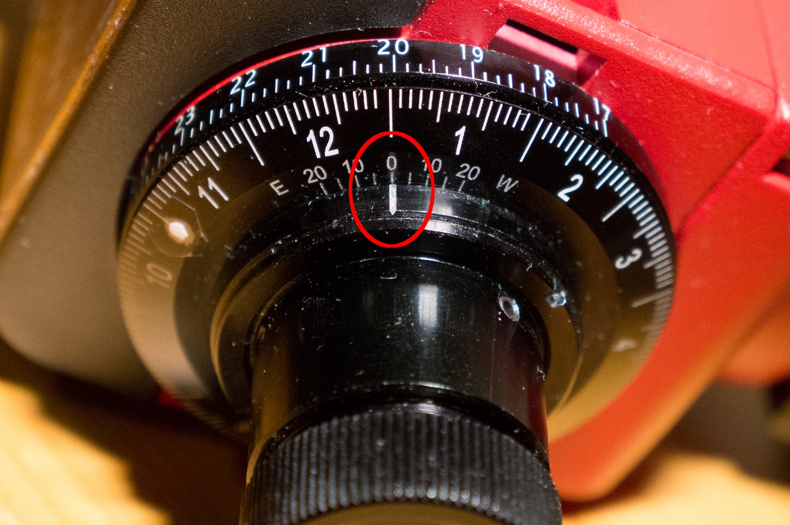 Ok då förstår jag problemet. Kanske det skulle gå att vrida polteleskopet och därmed skalan utan att den tappar justeringen.