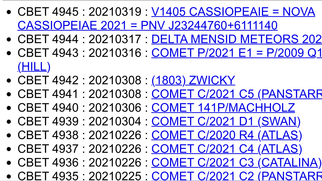 Jag hade lite problem med att registrera en av AAVSO filerna, vet inte riktigt varför. Jag provade idag att byta namnet från N Cas 2021 till V1405 Cas, och då gick det. Hojta till om något blev tokigt.