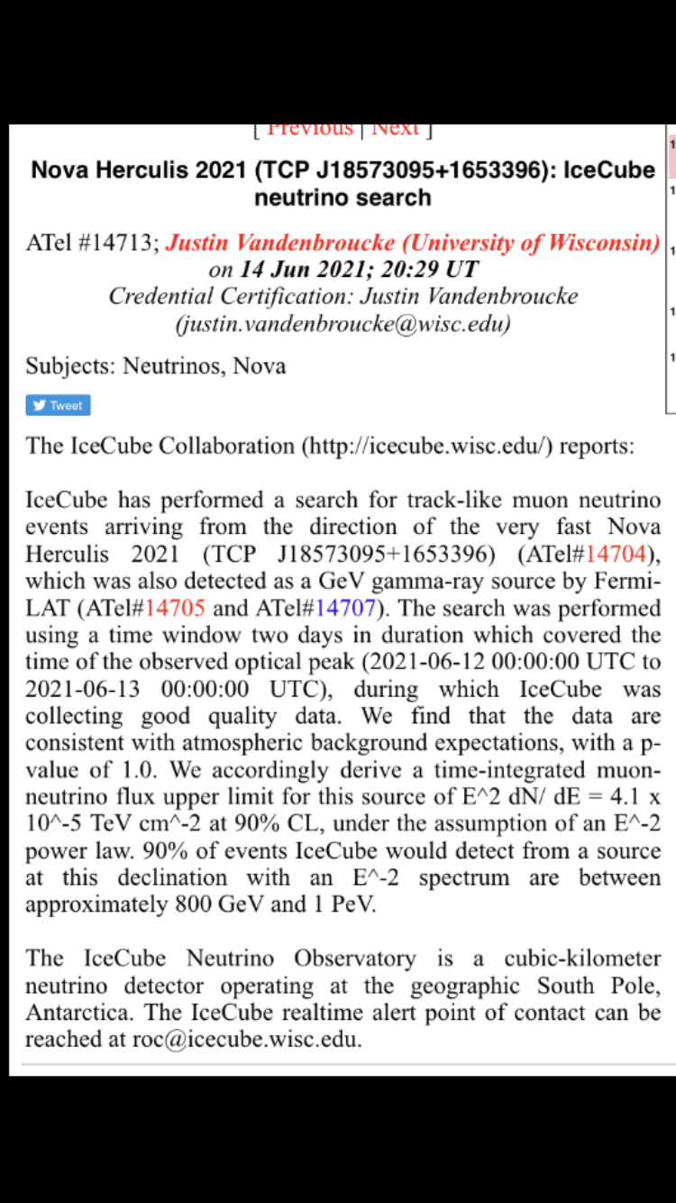 AAVSO har nu, i likhet med SVO, som primärnamn N Her 2021. Det slutliga namnet kommer förmodligen att offentliggöras inom ett par dygn.