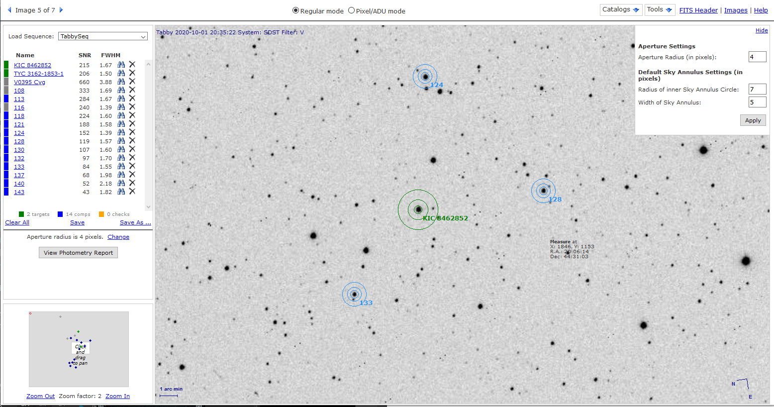 Jag har två userguides: VPHOT user guide och CCD Photometry Guide. Har lärt mig en hel del av dessa, inklusive hur man stackar, skapar sekvenser, ändrar aperturradie etc etc. Jag tror jag förstår workflow i VPHOT nu. Det finns bara en grej till som jag sitter och googlar på en hel del, och det är justeringen av apertur/annulus när det finns massa stjärnor i bakgrunden. Dom flesta av mina comp stars har alltid en stjärna, antingen i inre cirkeln eller yttre. Försöker justera radie men det blir inte tillrckligt bra. Tar jag bort alla dessa får jag kvar endast 2 stycken.