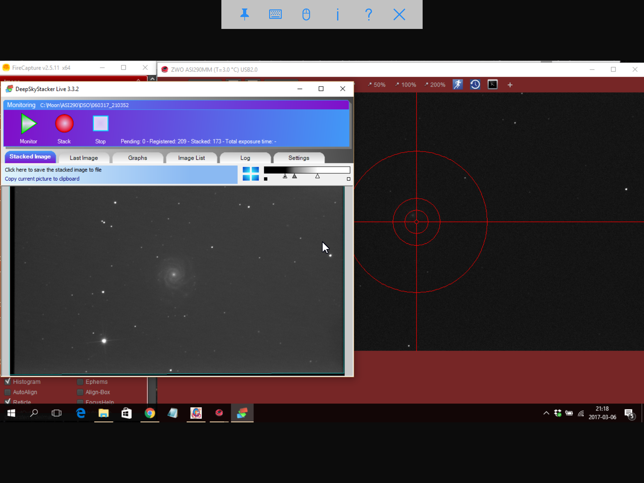 Hur som, jag brukar köra live stacking med DSS Live när jag fotar så man ser vad som händer. Tydligen ska SharpCap ha mycket bättre stöd för detta, men där lyckas jag inte stacka över huvudtaget (nåt om att den inte hittar tillräckligt med stjärnor för align) så kör den här så länge.