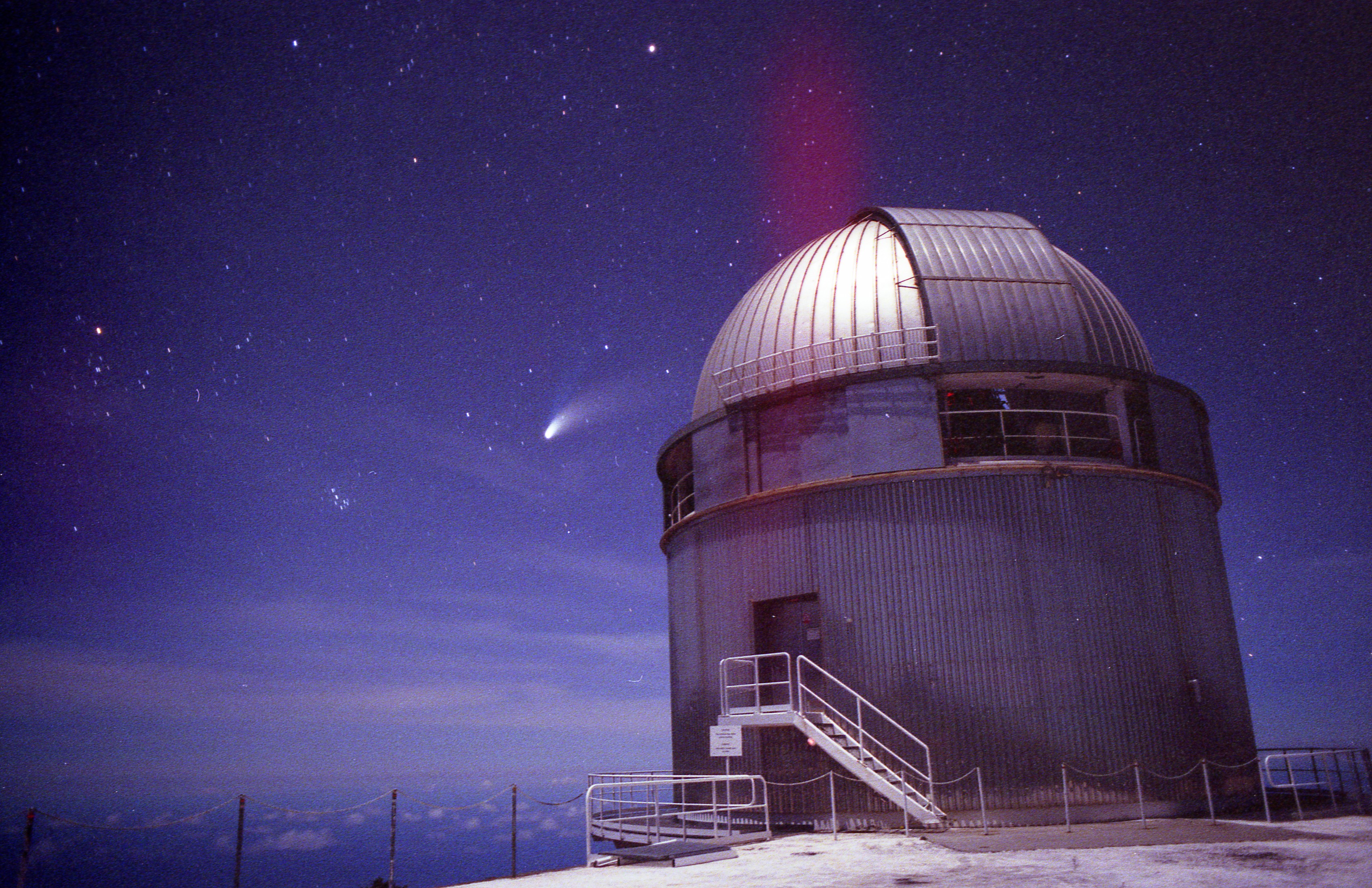 Här är teleskopet NOT, bakom syns Hale Bopp som våra Franska kollegor studerade i skymningen, i IR området som de studerade behöver det inte vara perfekt mörkt.