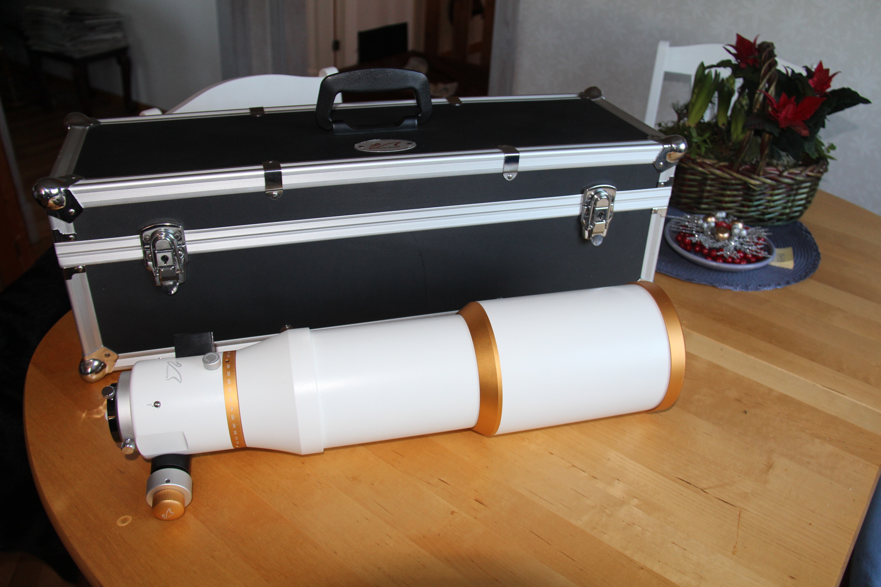 I have a William Optics Megrez 110 Doublet for sale in Goteborg. 2 speed (1:10) 2.5" Crayford focuser with 360 deg rotation. It comes with a flight case, Finder mount, 2" to 1.25" adaptor, dust covers both ends, tube rings and dovetail bar. This is a very nice refractor very lightly used. Very little chromatic aberration. It does not include any diagonal or eyepiece.