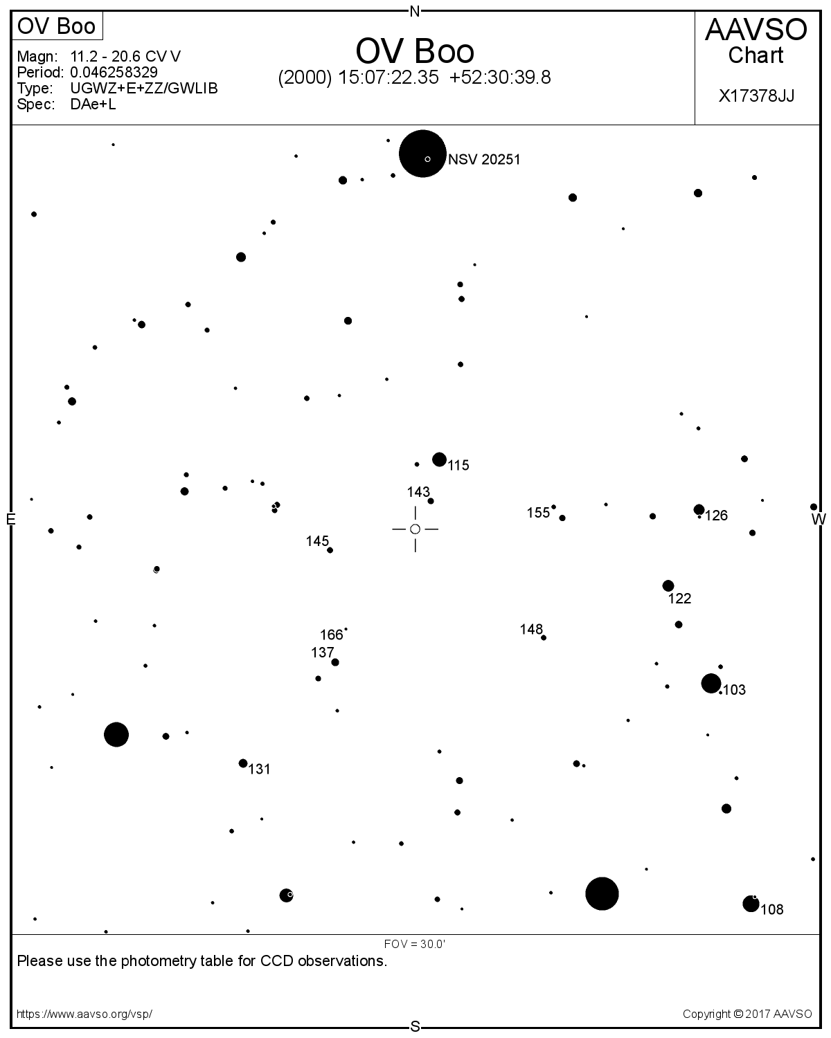 Nedan ges några AAVSO-kartor för OV Boo, alla har norr uppåt.