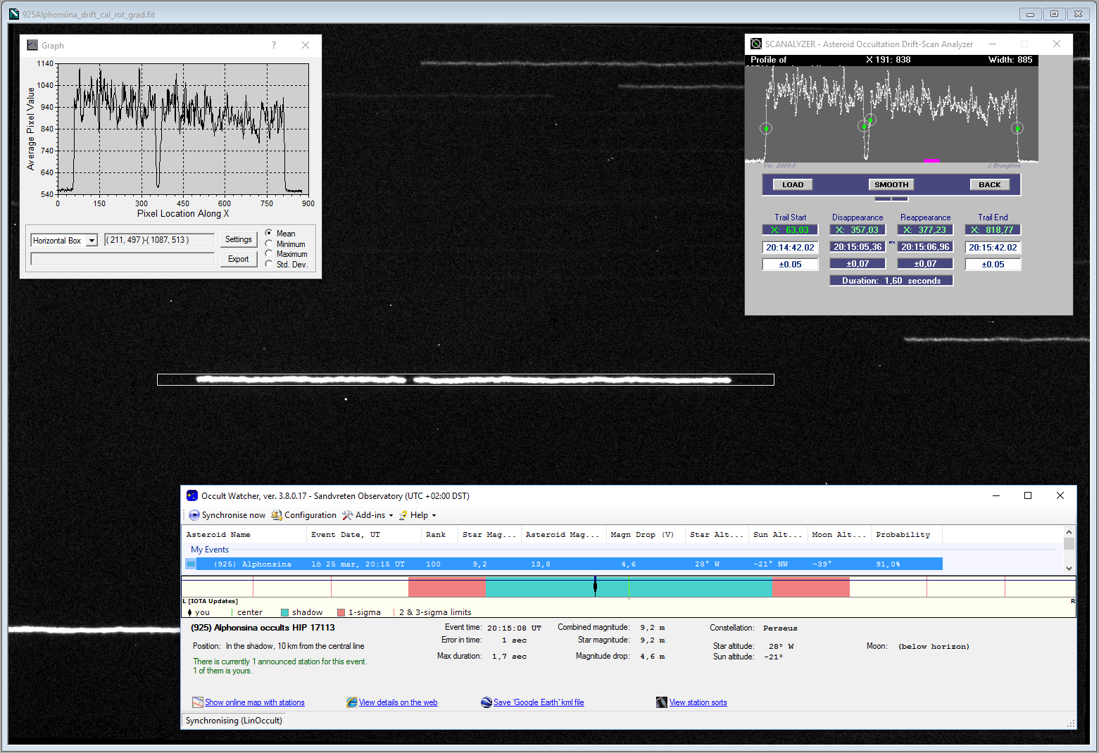 Re: Asteroid ockultation Alphonsina mag 9 stjärna i kväll