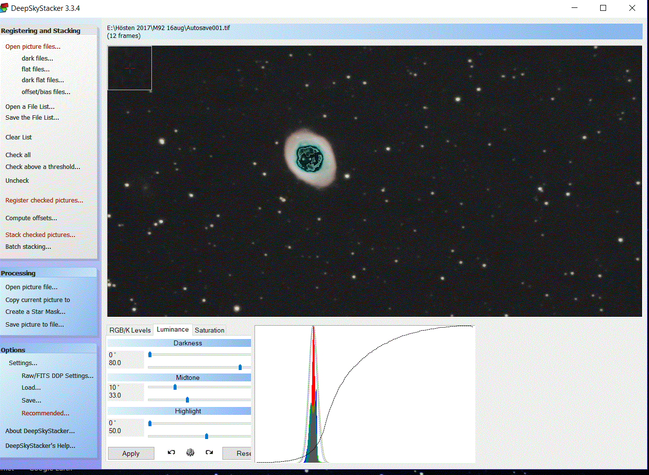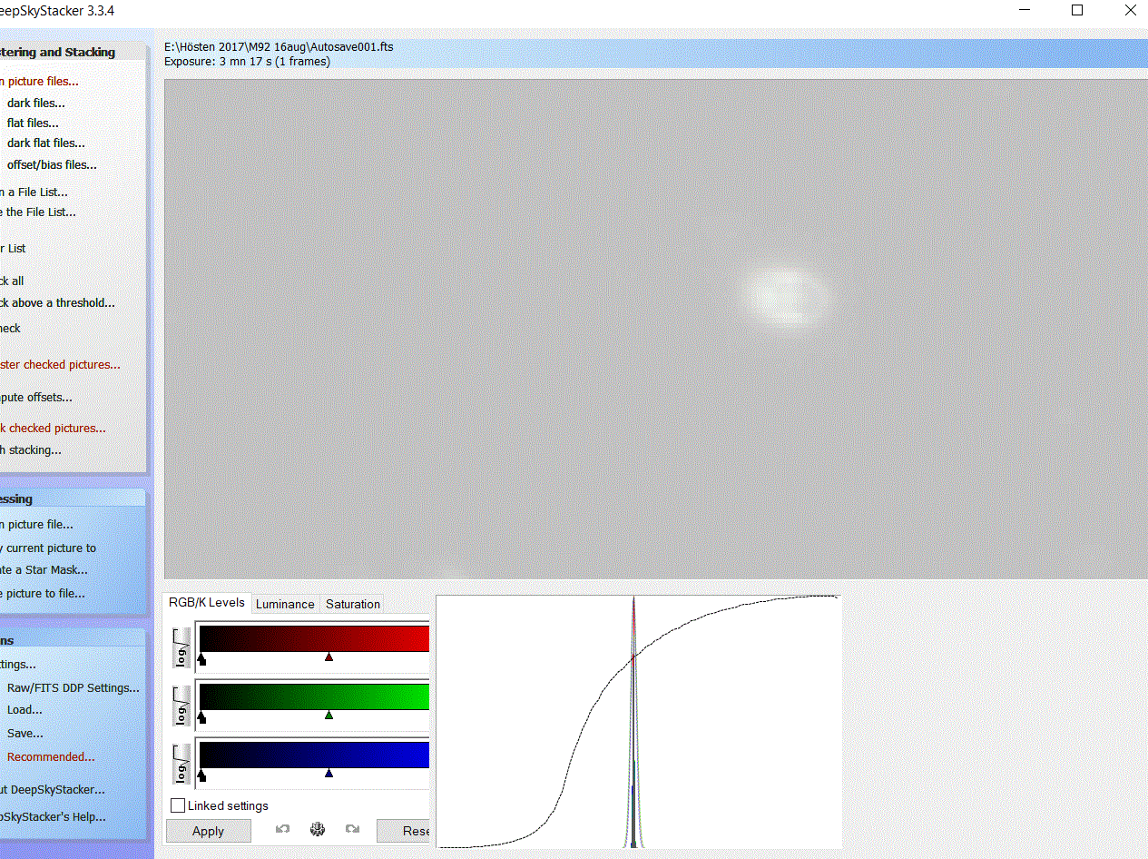 DSS är inte något du skall bearbeta färgerna med, är inte gjort för det. Du kalibrerar, alignar och stackar i det. Flat kalibrering tycker jag blir dåligt i det, antingen jag som gör fel eller så är det fel i programmet.