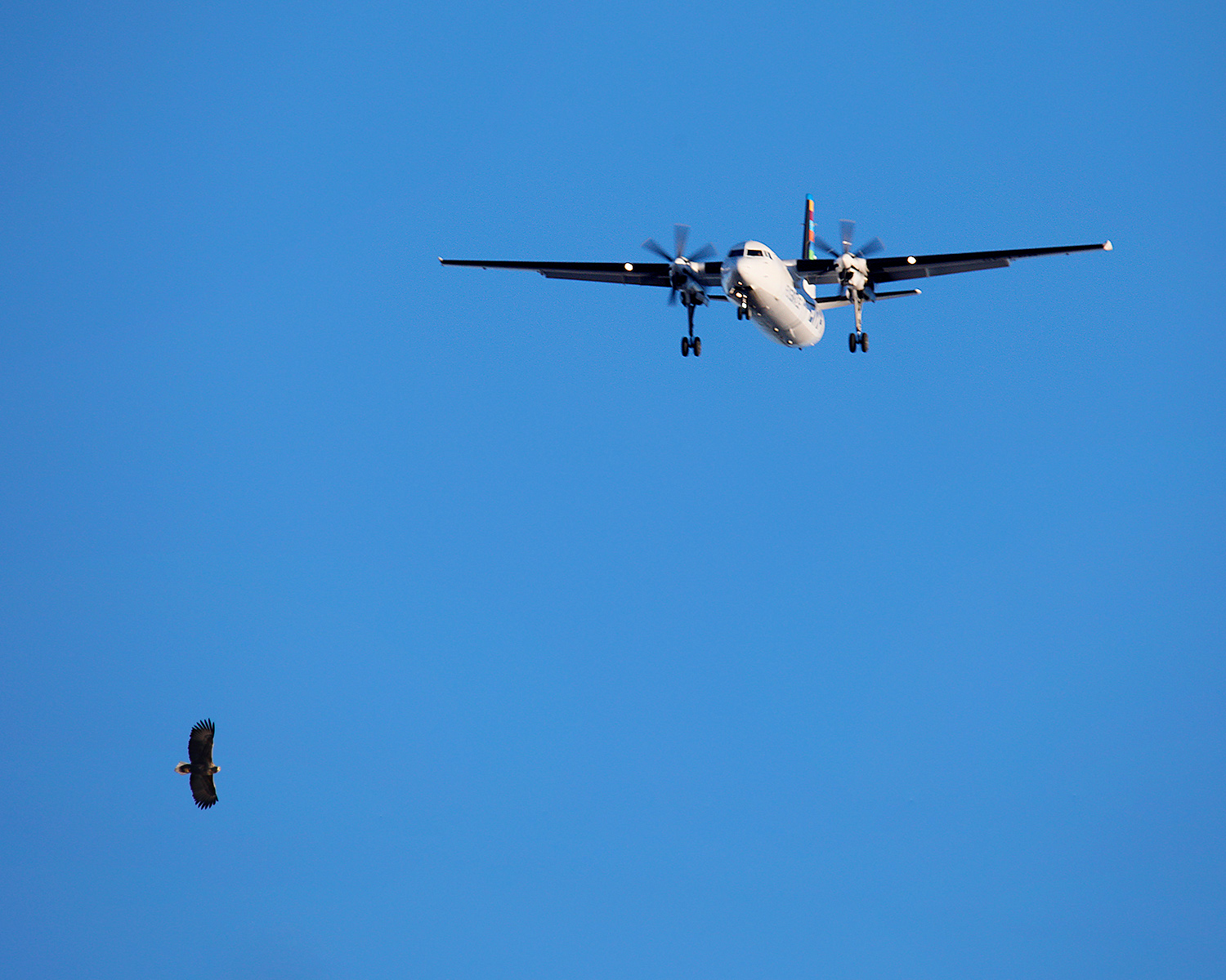 Bilden på örnen och flygplanet är inget montage utan är fotograferad på en och samma bild. Jag fick snabbt zooma ur för att få med båda på. Jag har även flera bilder på båda örnarna.