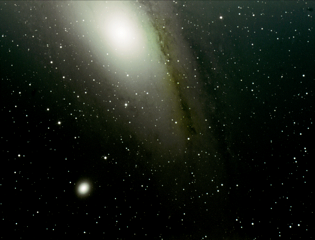 Jag kan i viss mån ändra färgskalan där med att även flytta gain och vitspaken, men antingen bränner jag ut dom ljus partierna eller så tonar jag bort objektet. I det här fallet M31.