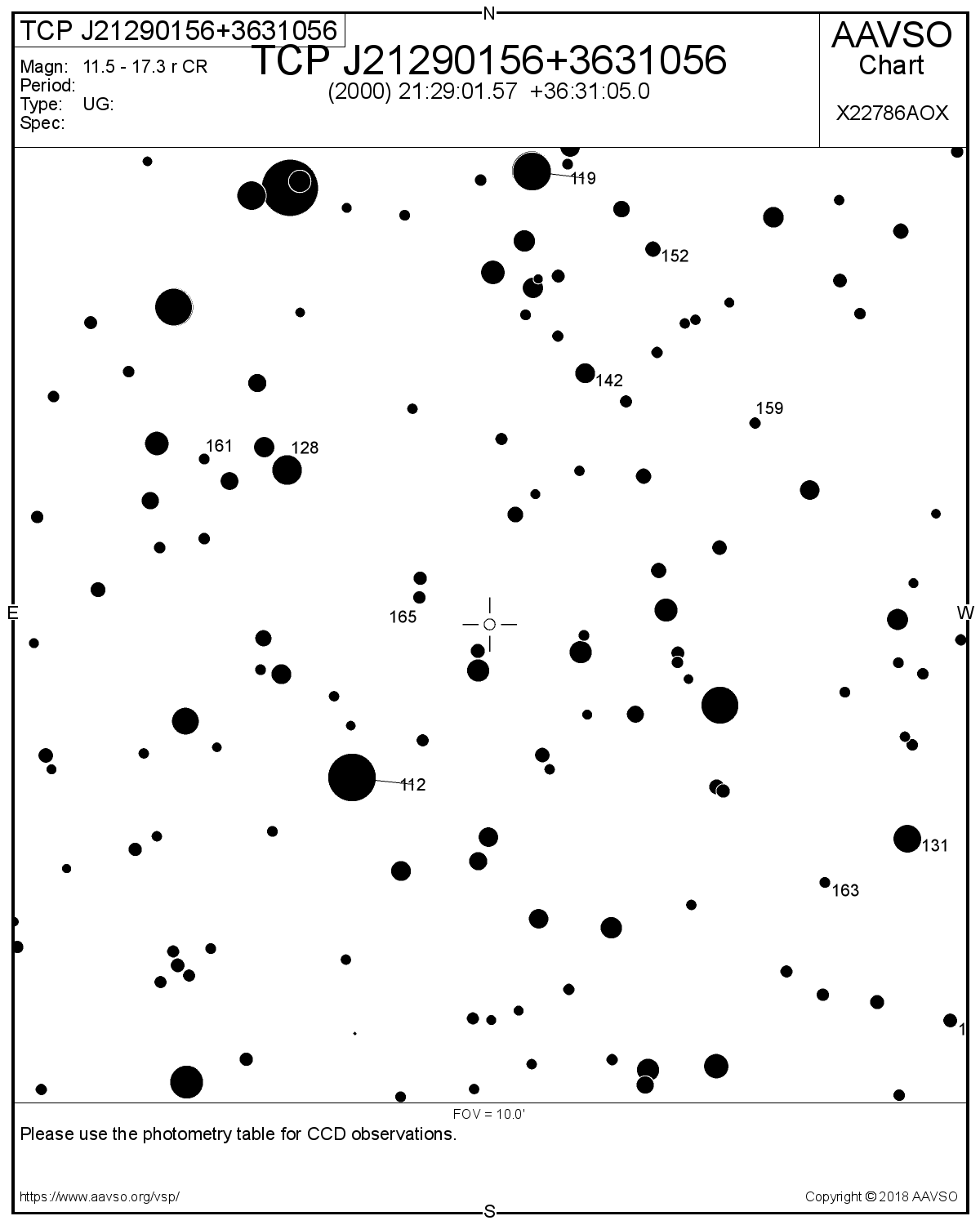Ett eruptivt objekt av ofiltrerad magnitud 11.5 har upptäckts i Cygnus: