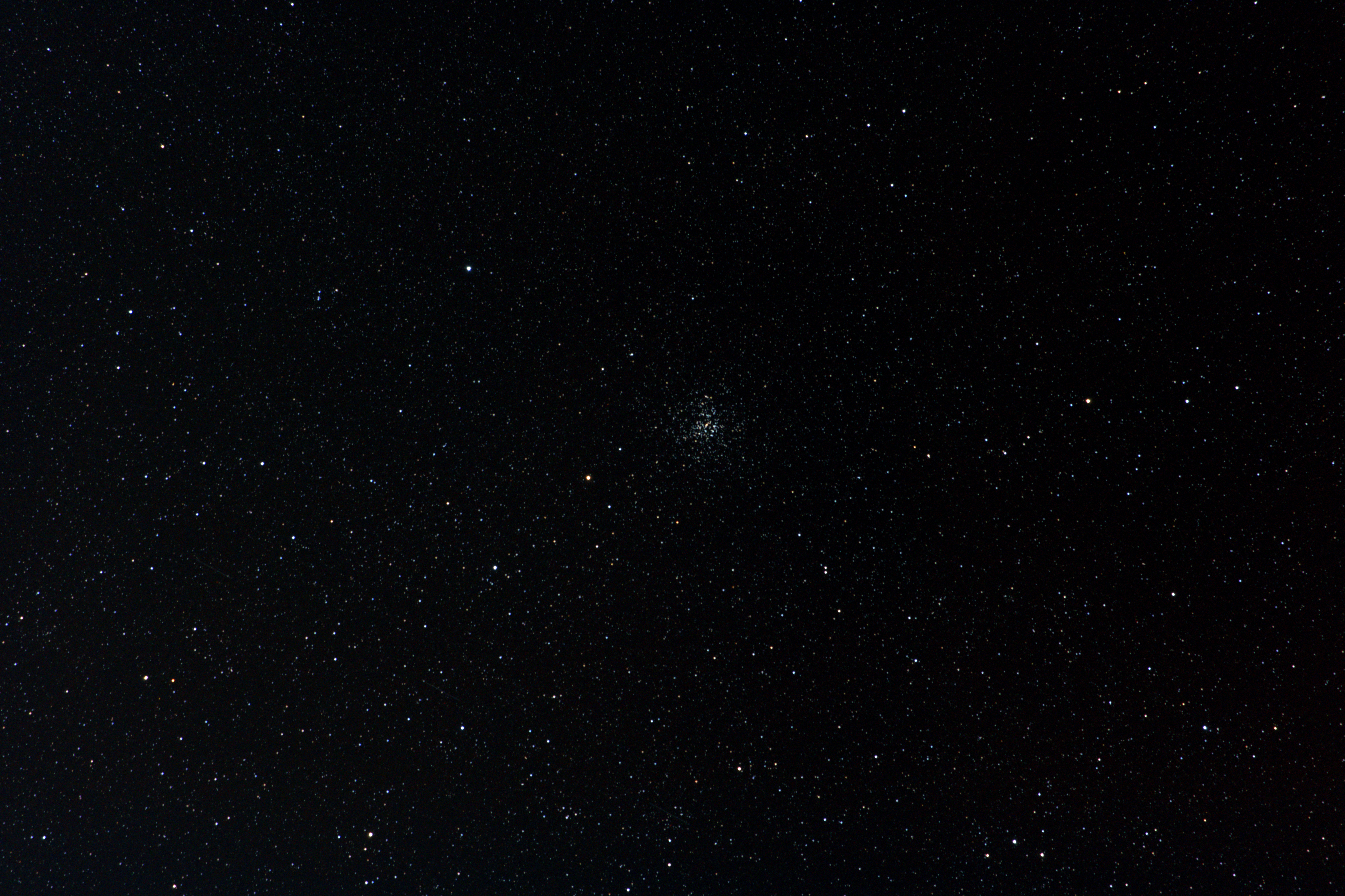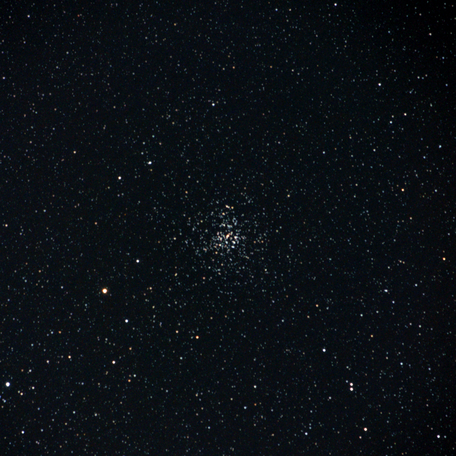 Kommentar: Våren här är den mest mulna tiden på året så det är få klara nätter för tillfället. Tog ut utrustningen mest för att inte glömma av hur man gör. För någon vecka sedan obsade jag M38, M36 och M37 varav den sistnämnda gjorde störst intryck på mig. Hopen verkade vara störst av de tre men mycket mer avlägsen. Idag lärde jag mig att dessa öppna stjärnhopar dissocierar långsamt vilket var lite ledsamt att höra. Fast det spelar ingen större roll, vid den tidpunkten är jag själv riktigt väl dissocierad. Givetvis gör sig hopen inget vidare på bild med ynka 250mm men det får duga för den här gången.