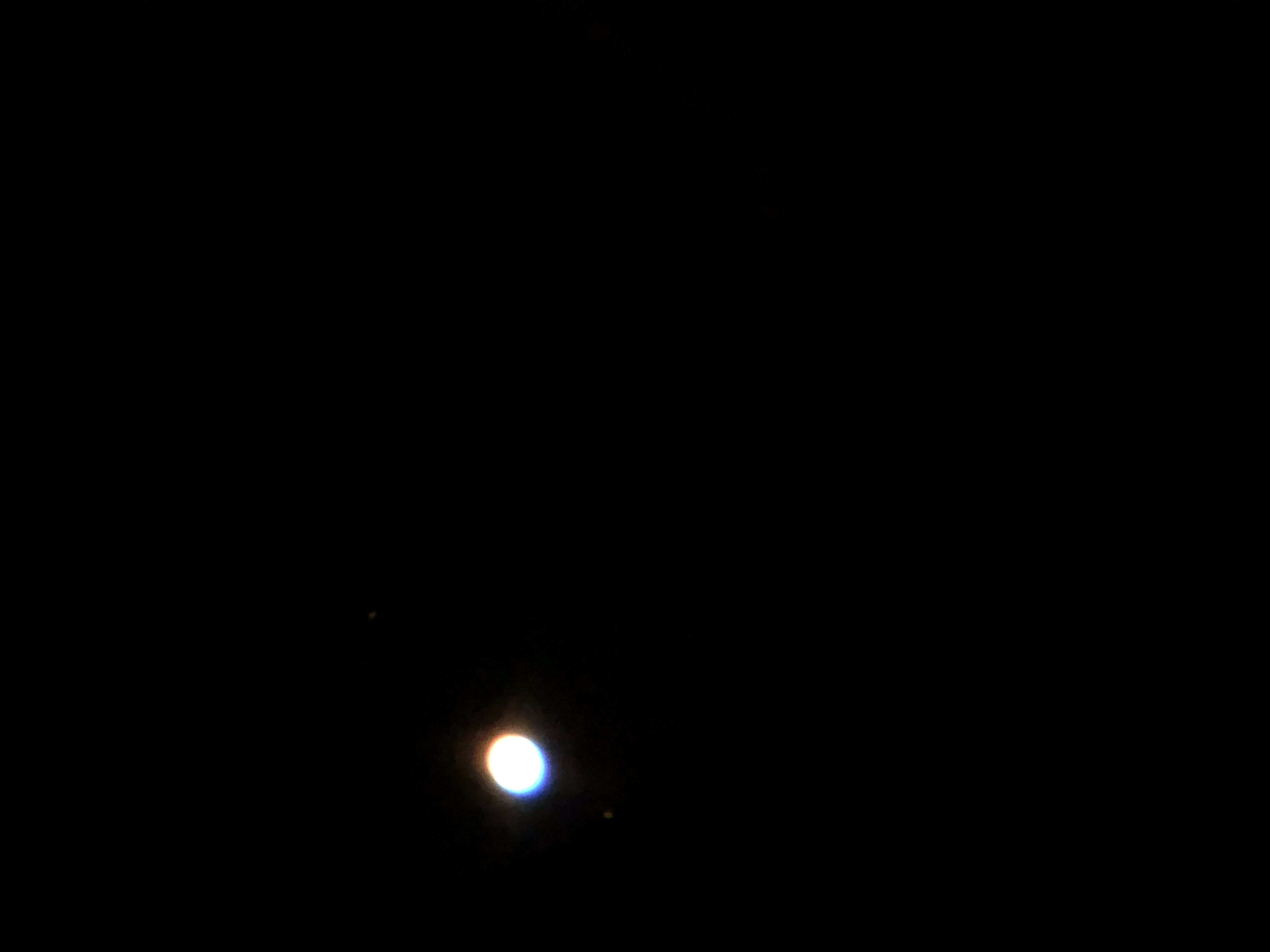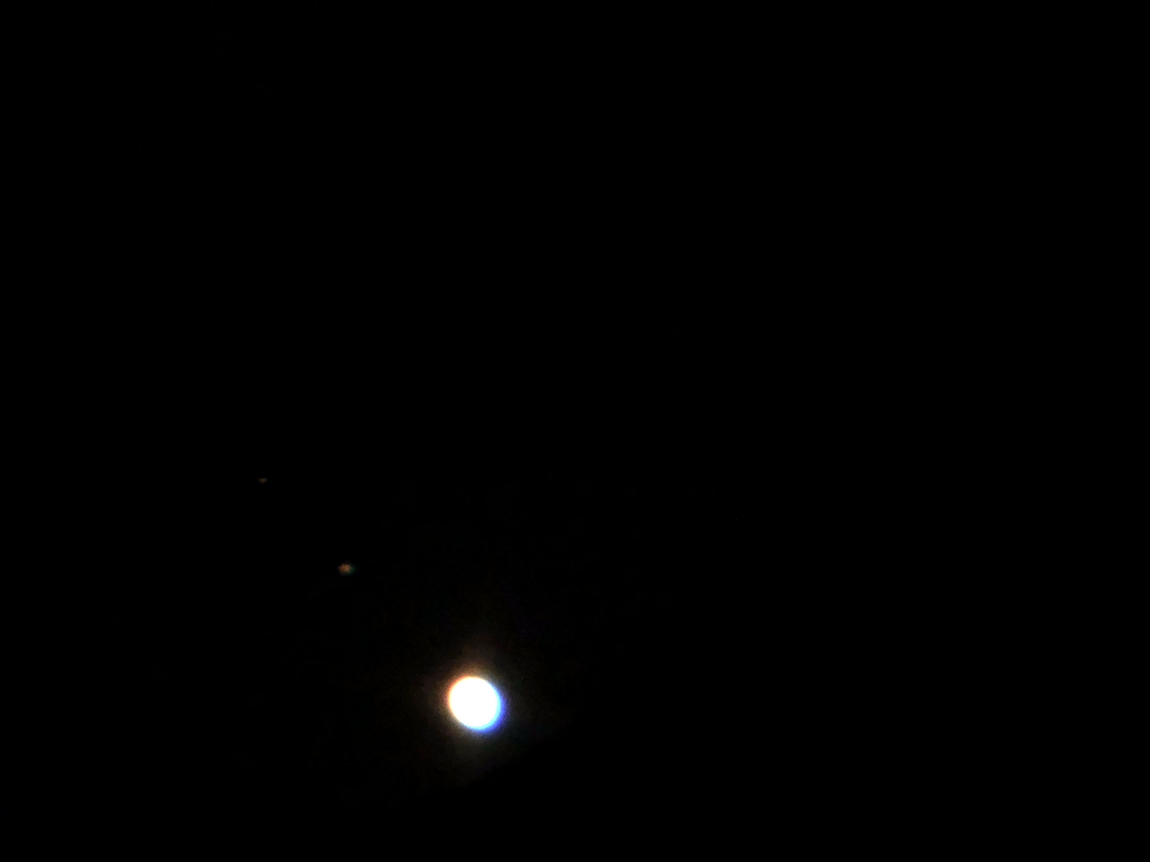 Det finns två små ljusa prickar i det röd-orangea precis nedanför planeten men det verkar inte vara något.