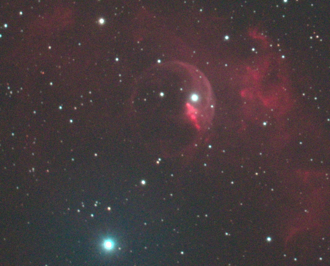 När jag kollade min bild på bubbel nebulosan lite noggrannare så hittade jag en "extra" ljusare stjärna . Som jag inte (eller möjligen mycket svagare) hittar på andra bilder . tex