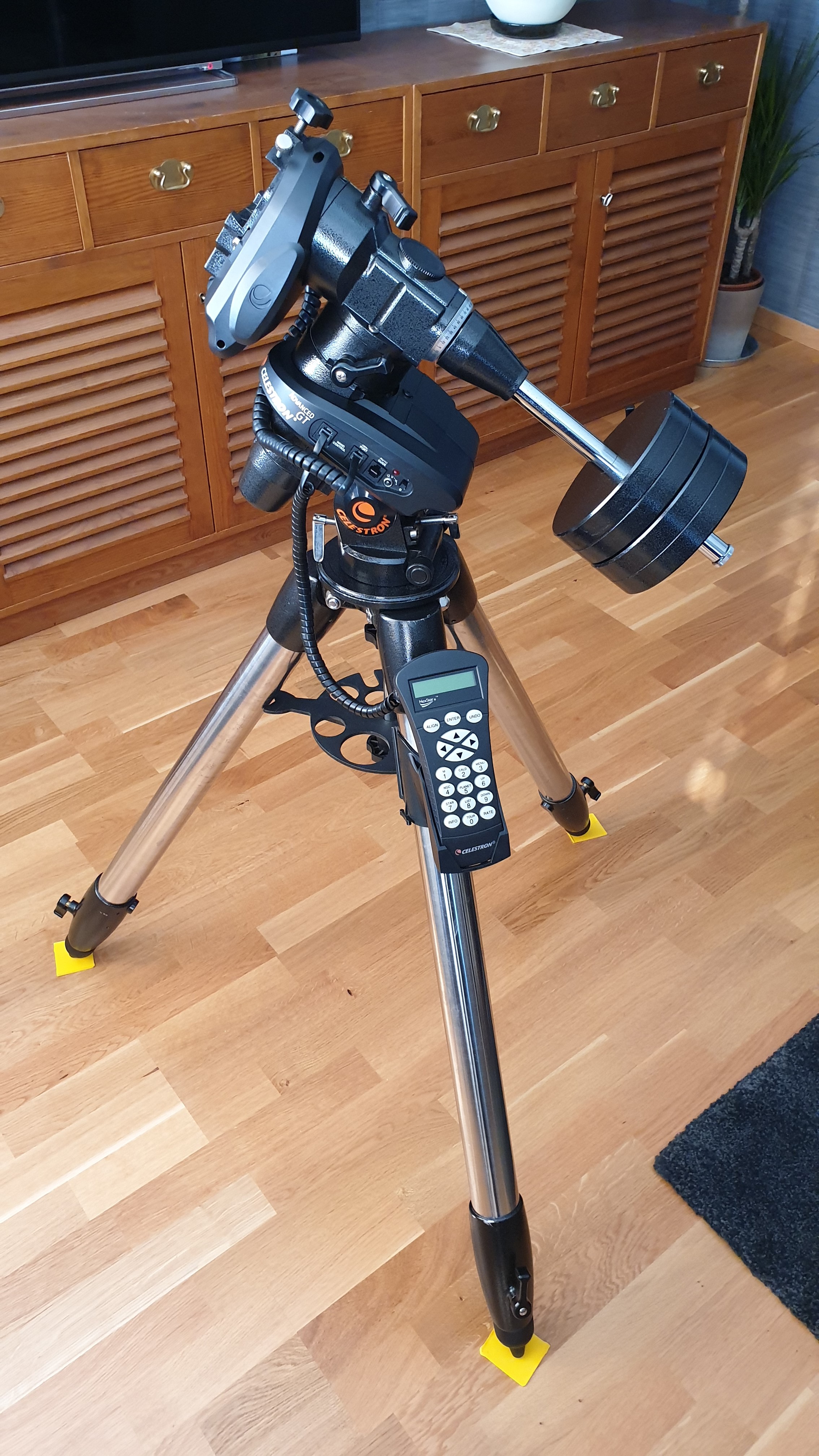 Celestrons Advanced GT montering i mycket bra skick säljes. Knappt använd. Komplett med handkontroll innehållande databas med 40.000 objekt och GOTO-funktion.