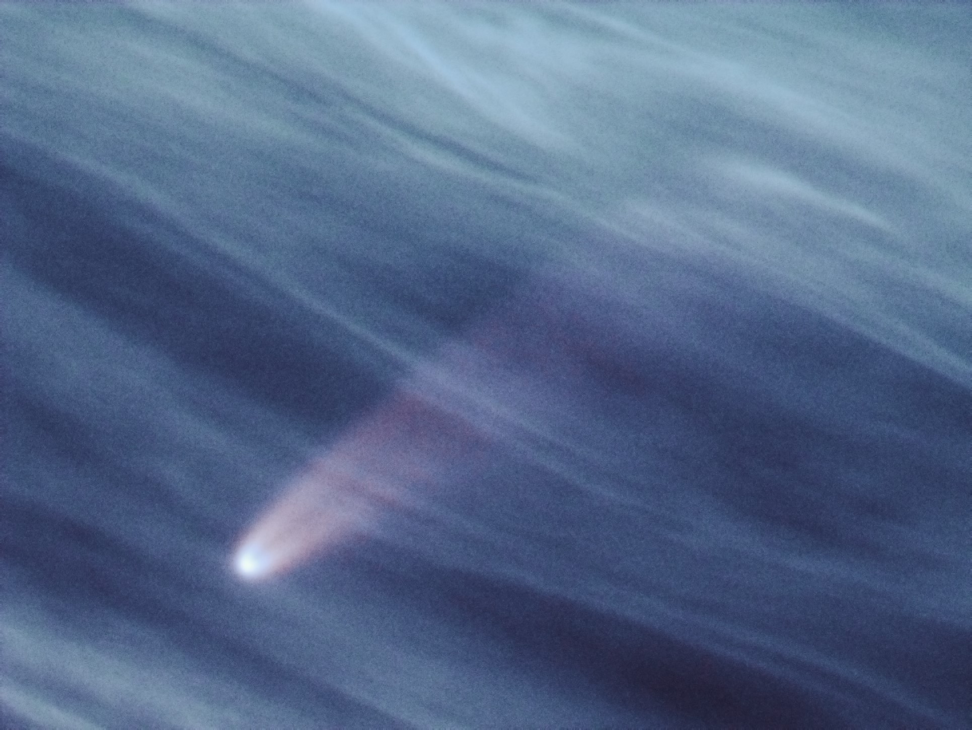 Jag har njutit av de nattlysande molnen de senaste veckorna, men när det nu var dags att försöka få till en bild på kometen så gjorde de allt saker och ting lite svårare. Samtidigt ger de en behaglig bakgrund (egentligen förgrund