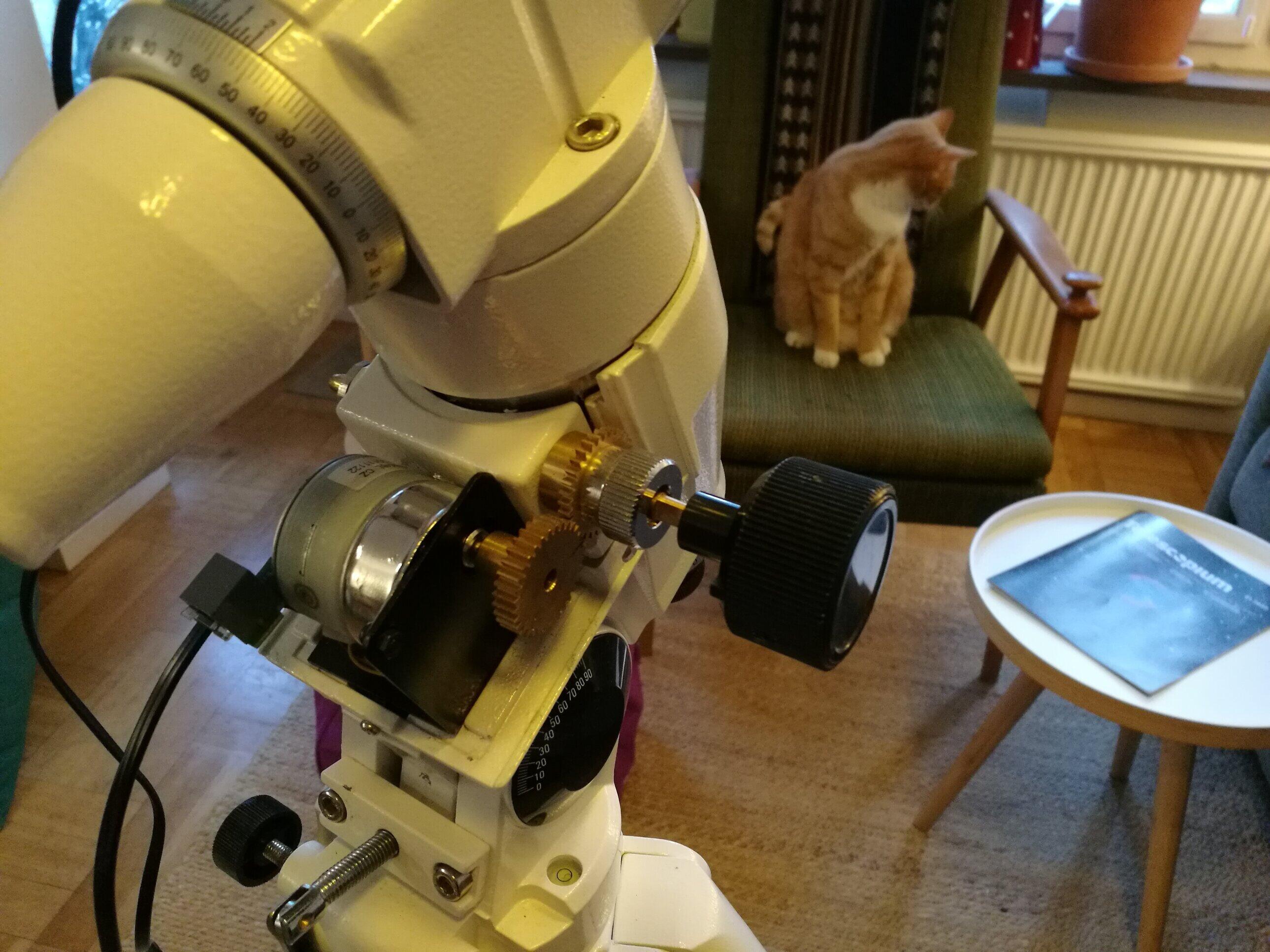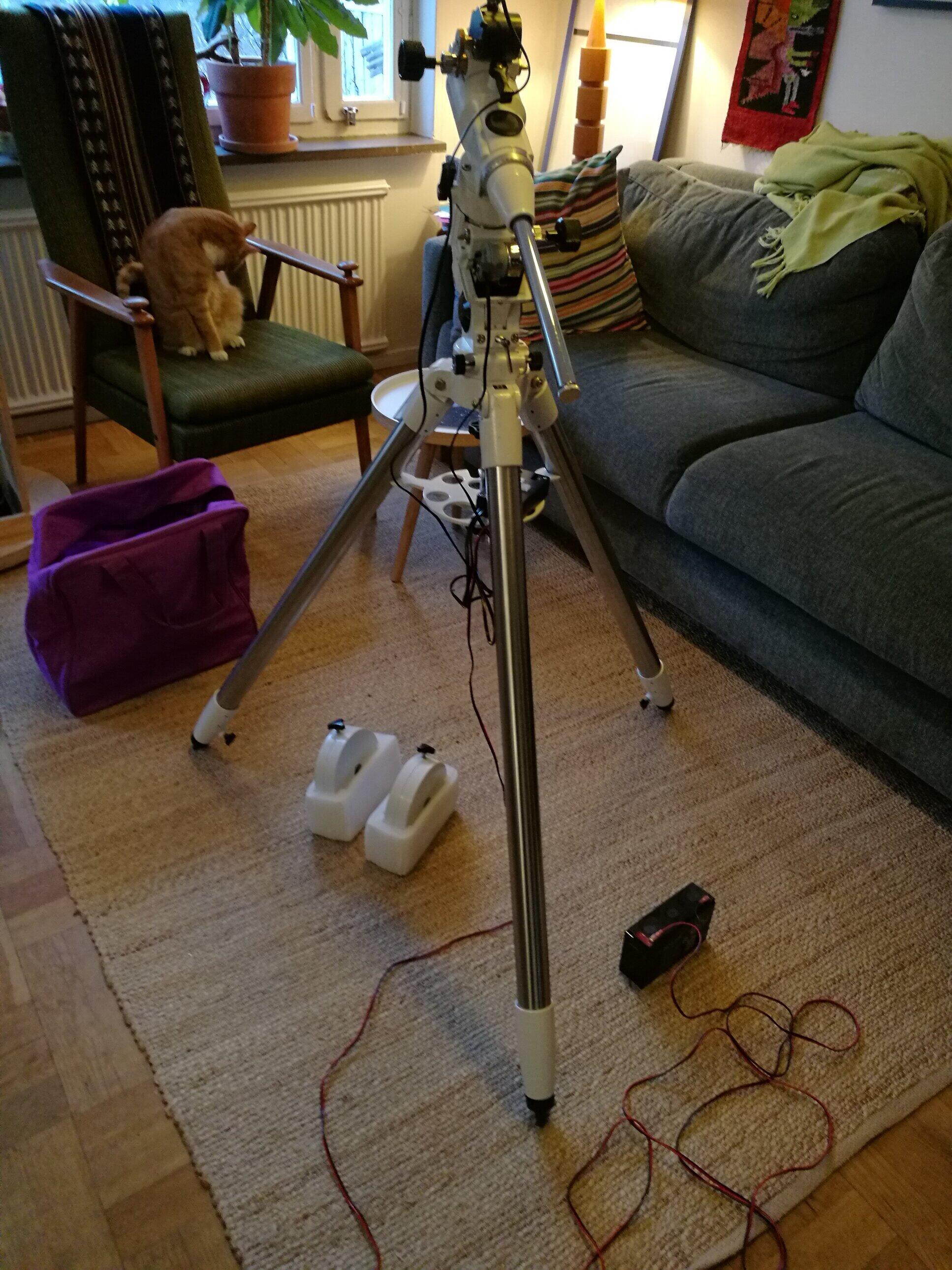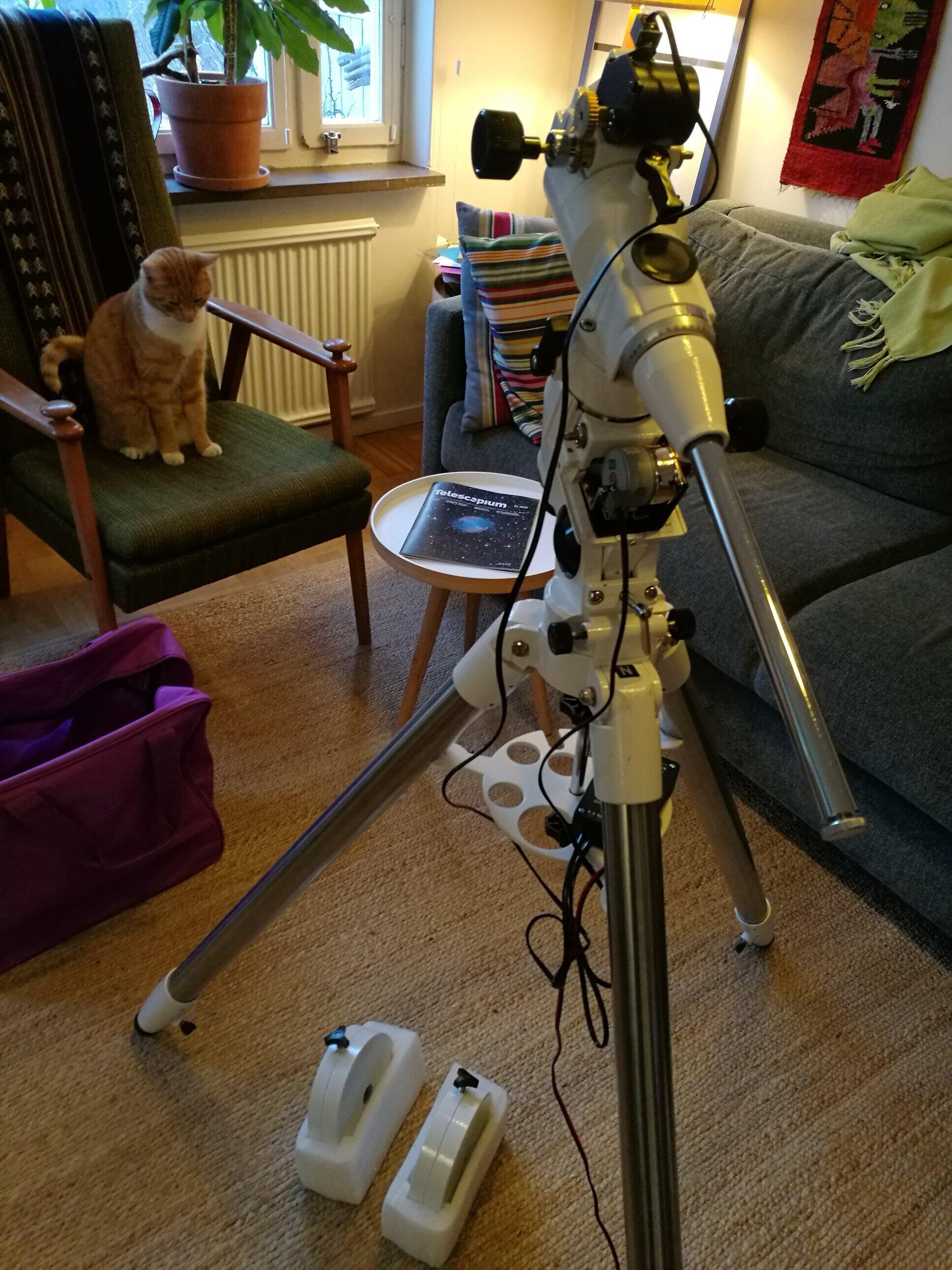 År 2015 köpte jag denna montering och sina motorer till mitt Skywatcher 200 PDS. Jag har använt den flitigt och är mycket nöjd men jag har för tre år sedan gått över till en dobson montering för teleskopet. Eftersom jag inte längre använder denna montering och sina tillbehör så säljer jag den.