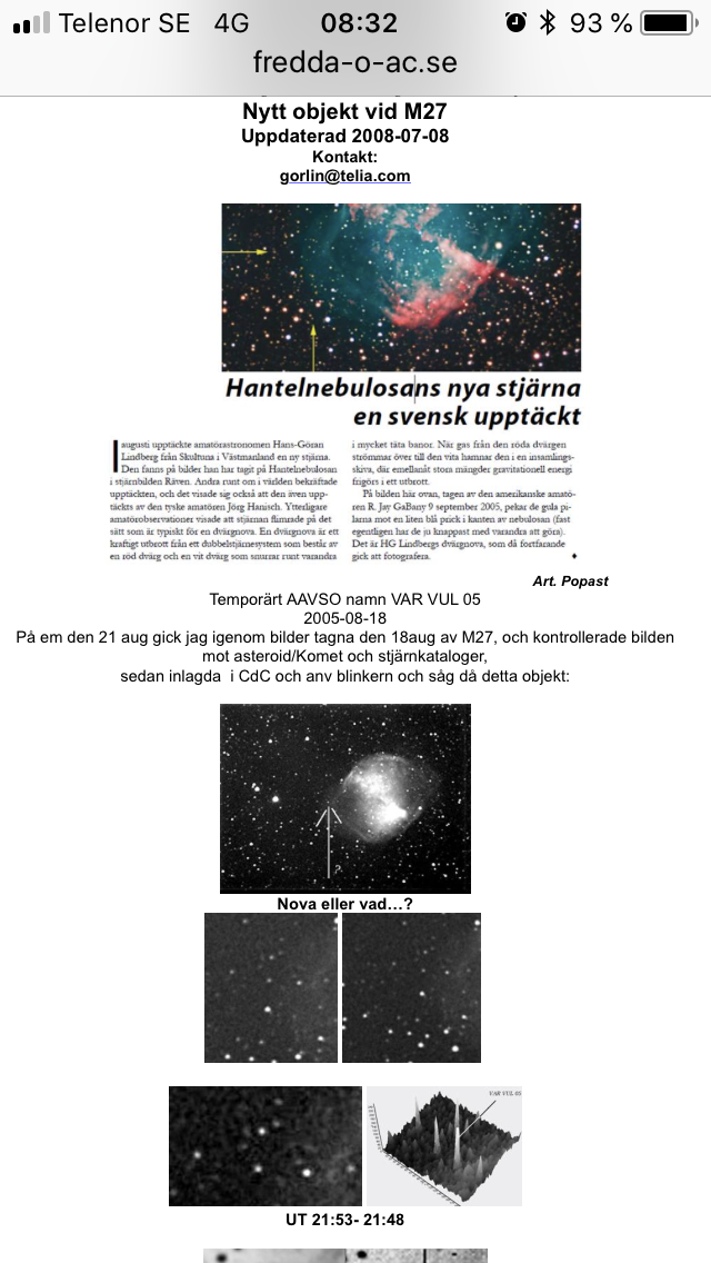 Pröva den här länken, här finns mer av HG:s observationer och bilder: http://www.fredda-o-ac.se/KPO/linvar.htm" onclick="window.open(this.href);return false;[/quote]ThomasK wrote:Här hittar man HGs astronomiska hemsida (jag har sett mycket mer info på hemsidan tidigare, kanske är det borttaget?)