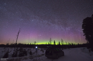 Kommentar: En bakom kulisserna bild från igår kväll som visar den vackra natthimlen som var. På bilden ser ni min AstroTrack som står och tuggar bilden på Andromeda och PanStarrs som också dom syns i mitten av bilden.
