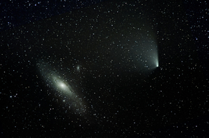 Kommentar: Min tolkning av detta himmelska möte i skyn. Lyckades göra mycket fel. Fel objektiv, fel exponeringstider och felaktigt handhavande av utrustningen, dessutom allt mot egentligen bättre vetande. Men till slut blev det i alla fall en bild jag tycker jag kan presentera. Det är ju roligt att visa upp ett resultat också, även om mycket kunde gjorts bättre. Gav nästan upp bilden, men rätt vad det var tonade någonting presentabelt fram på skärmen. Kanske jobbar jag mer med bilden, får se. Just nu får den vara så här i alla fall. Bilden är ett riktigt hopkok av pusslade och justerade bitar. De bilddata jag använt skall man nog egentligen bara låta ligga på hårddisken, förtvivla och gå vidare. Men det blev ju en bild till slut :-) Förresten, våga vägra motor för följningen, tror jag skall starta en sådan klubb :-)