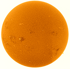 Kommentar: Inverterad solskiva, kör fortfarande med färgkamera så jag tappar lite i detaljerna, first light med min Lunt LS60 med B1200