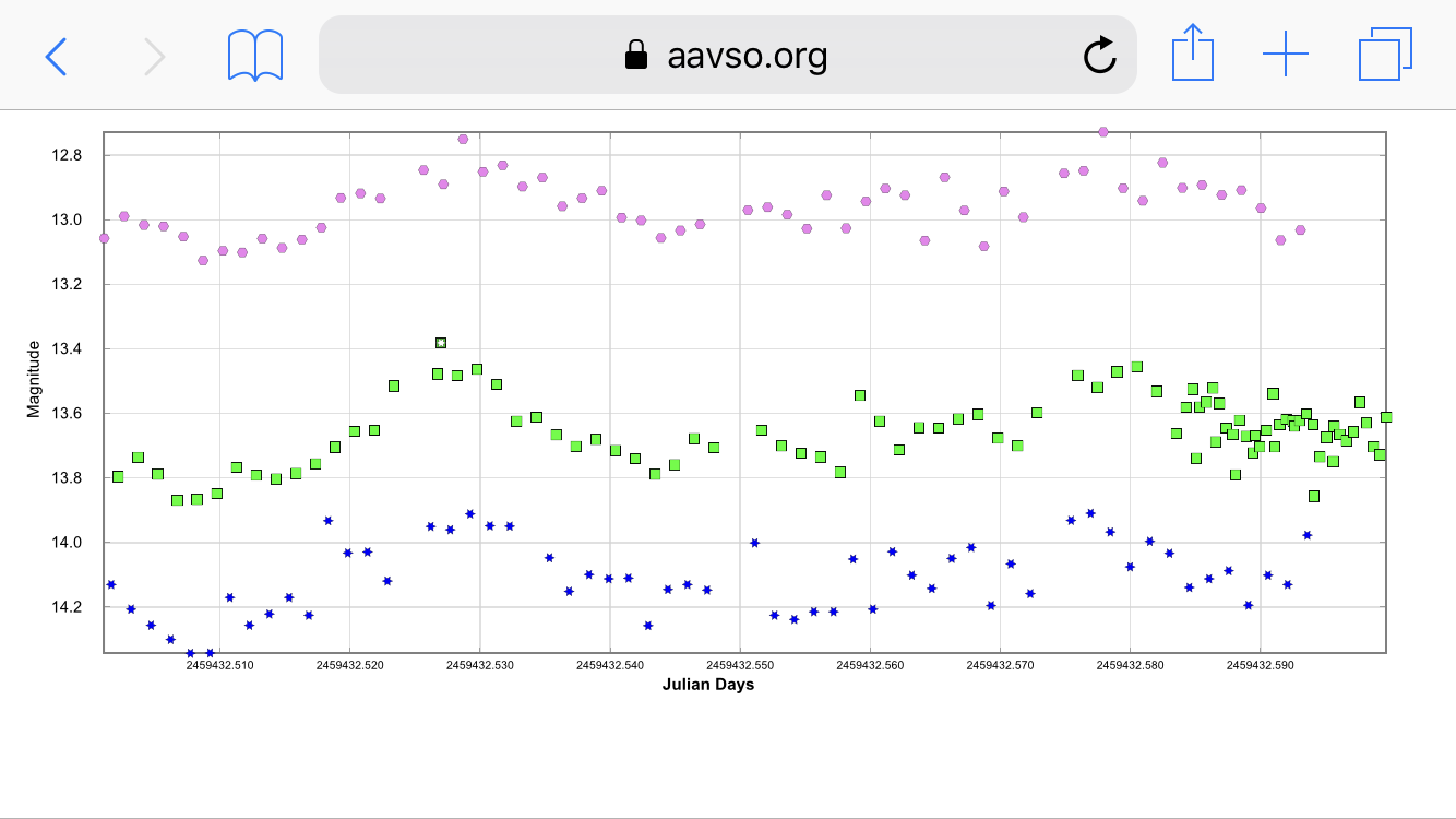 Ja den är klart spännande!! Jag har en serie från inatt med men jag har stora problem med VPHot (precis som igår men till sist går det). Jag har lyckats få in V- och B-banden men i I-bandet hävdar VPhot att den inte kan identifiera variabeln - fast den mycket tydligt KAN göra det när man tittar på individuella bilder.
